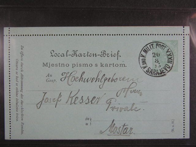 1341 sestava 3 ks dopisu (2x RECO) z let 1893 - 1901 s raz. MOSTAR, TRAVNIK, SARAJEVO, zajimave frankatury, k prohlednuti 4000