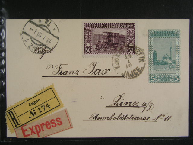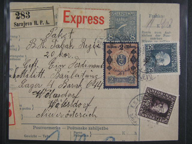 1346 EXPRES balik. pruvodka dofrank. zn. Mi. c. 77, 112 + kolek 2hl, pod. raz. K.u.K. M.P.F. SARAJEVO 21.7.17 + prich. raz., cca 700 EUR 2000