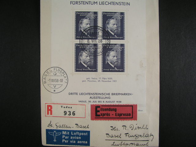 sestava 7 ks let. dopisu z let 1938 - 9, pestre zajimave frankatury, 3x se sluzebnimi znamkami, zajimava sestava