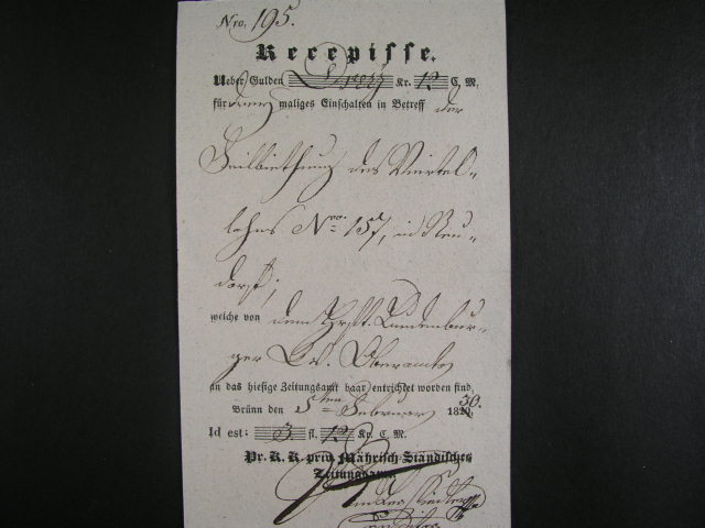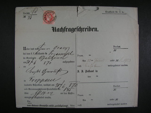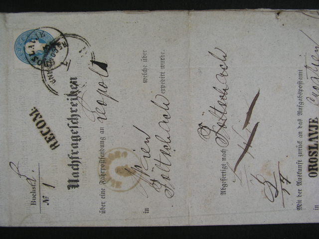 Nachfrageschreiben se zn. 15kr Fe. c. 22 s raz. OROSLAVJE 3.7., 1500 EUR