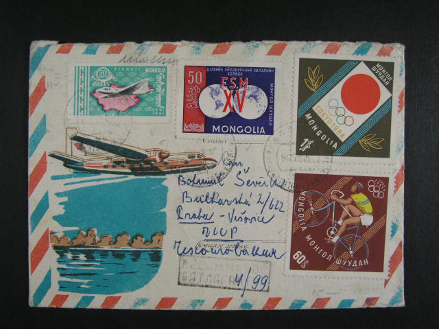 Mongolsko - sestava arsiku, zn. a celistvosti s pestrymi frankaturami z let 1968-9, k prohlednuti