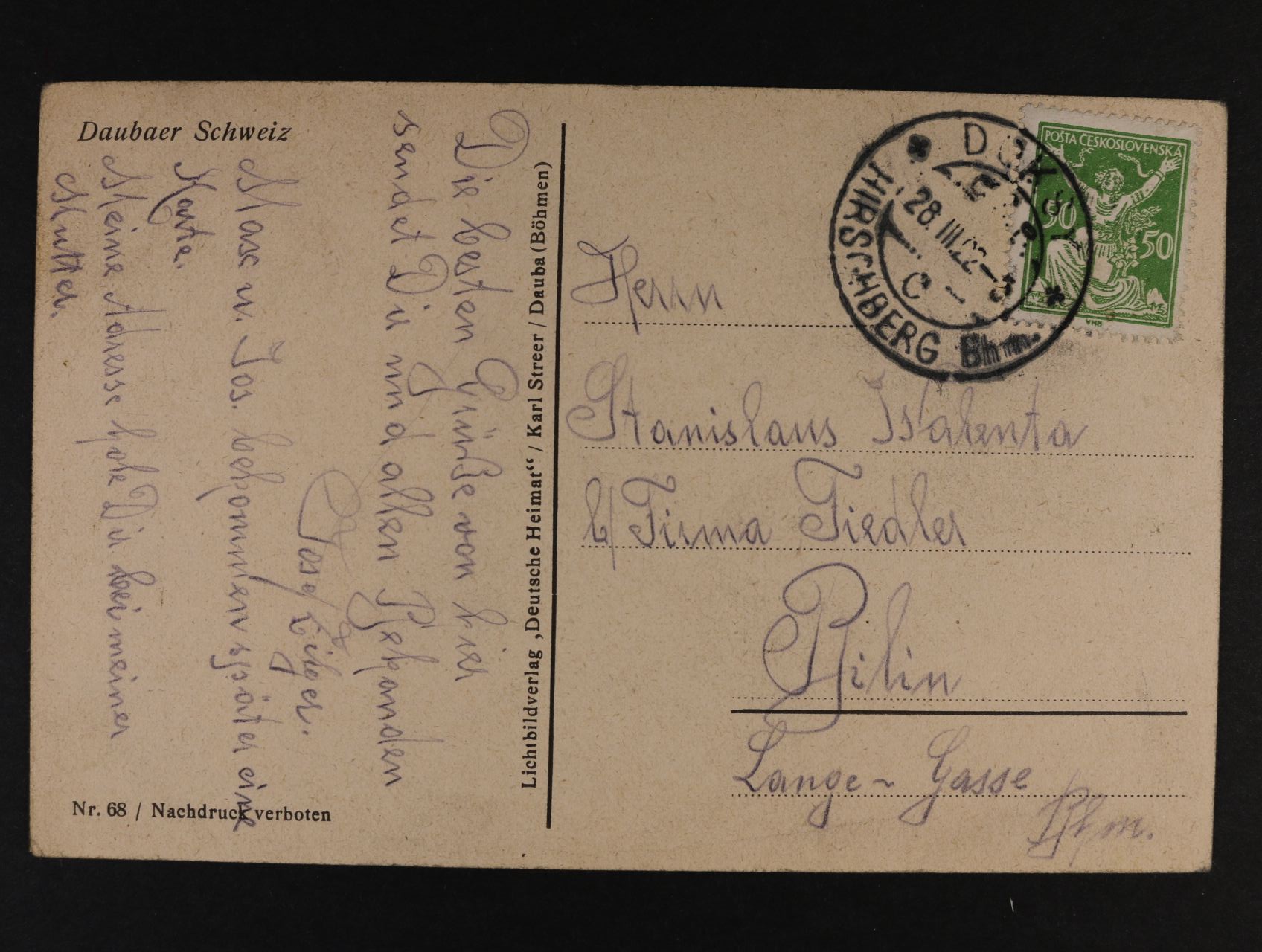 Albánie / Albania Belgie / Belgium Bosna a Hercegovina / Bosnia - Herzegovina Celiny ČSR I / Postal stationery Celiny od r. 1945 / Postal stationery after 1945 Červený kříž 1920 / The Red cross Česká republika / Czech Republic Česká republika celiny / CR postal stationery Československo od r. 1945 celistvosti / CS after 1945 entires Československo od roku 1945 / CS after 1945 Dánsko / Denmark Doplatní, OT a Doruční / Postage due and Printed matter Exilové - výstavní aršíky Francie / France Frankotypy 1918 - 39 / Frank - cancellers Gibraltar / Gibraltar Holandsko / Nerherlands Holubice 1920 / Dove Hospodářství a věda 1920 a 1923 / Agiculture and science 1920 and 1923 Hradčany - Vzorce, návrhy, zkusmé tisky a ostatní Hradčany 1918 Hradčany celistvosti / entires Hrady, krajiny a města 1926 Husita 1920 / The Hussite Island / Iceland Itálie / Italy Judaika / Judaica Jugoslávie / Yugoslavia Koncentrační tábory a věznice, tábory / Concentration Camps, Camps Legionářské 1919 / Legionnaire 1919 Letecké 1918 - 1939 / Airmail Letecké 1945 - 1992 / Airmail Lichtenštejnsko / Lichtenstein Literatura / Literature Lucembursko / Luxembourg Maďarsko / Hungary Makedonie Malta / Malta Masaryk 1920 Masaryk 1923 - 1926 Německo polní pošta / Germany field post Německo - Berlín / Germany Berlin Německo - Danzig / Germany Danzig Německo - NDR / GDR Německo - obsazené území / German occupation Německo - okupační zóny / German occupation zone Německo - pošta v zahraničí / Germany post abroad Německo - Sársko / Germany Saarland Německo - Staroněmecké státy / German States Německo 1870 - 1945 / Germany 1870 - 1945 Německo 1870 - 1945 celistvosti / Germany entires Německo celiny / Germany postal stationery Německo SRN / GFR Norsko / Norway Novinové / Newspaper Ostatní do roku 1939 / Others Ostatní od roku 1929 / Next from 1929 Osvobozená republika 1920 / The Liberated Republic Perfiny Podkarpatská Rus 1918 - 39 / Transcarpathia 1918 - 39 Podpisy a autogramy Polní pošta / Field post Polsko / Poland Portugalsko / Portugal Pošta Československá 1919 Pošta Československá 1919 celistvosti / entires Poštovny Praha - Tatry 1926 Předběžné Protektorát Č a M. celiny / B. a M. postal stationery Protektorát Č. a M. / Bohemia a Moravia Protektorát Č. a M. celistvosti / B. a M. entires Protektorátní známky použité po r. 1945 / Protectorate stamps used after 1945 Protichůdné dvojice / téte-béche Provizorní razítka po r.1945 Rakousko - Lombardsko Benátsko Rakousko - pošta v zahraničí / Austria post abroad Rakousko - předznámkové období / Austria prestamp period Rakousko 1850 - 1918 / Austria from 1850 to 1918 Rakousko 1850 - 1918 celistvosti / Austria from 1850 to 1918, entires Rakousko celiny / Austria Postal stationery Rakousko I. republika 1918 - 45 / Austria republic 1918 - 45 Rakousko II. republika od roku 1945 / Austria republic from 1945 Rakousko lodní pošta / Austria seapost Rakousko polní pošta / Austria field post Rakousko poštovní formuláře / Austria postal form Razítka vlakové pošty Řecko / Greece Revoluční přetisky 1918 / Revolution overprints 1918 Revoluční přetisky a vydání / Revolution overprints 1945 Rumunsko / Romania Rusko a SSSR / Russia and USSR Různé / Various Sbírky / Collections Skauting Skautské / Scout issue Slovenská republika / Slovak Republic Slovensko 1939 - 45 / Slovakia 1939 - 45 Slovensko 1939 - 45 celistvosti / Slovakia entires SO 1920 Souběžné Španělsko / Spain Spěšné / Special delivery Sport a OH / Sports and Olypics Srbsko / Serbia Sudety / Sudetenland Švédsko / Sweden Švýcarsko / Switzerland Ukraina / Ukraine Velká Británie / Great Britain ZÁMOŘÍ / OVERSEAS Zeppelinová a Katapultová pošta / Zeppelin and Catapult Mails