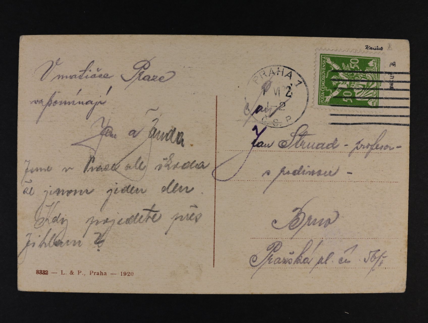 515 firemní celistvost frank. mj. zn. č. 158, 160, pod. raz. KRÁLOVSKÉ VINOHRADY 20.7.22 300