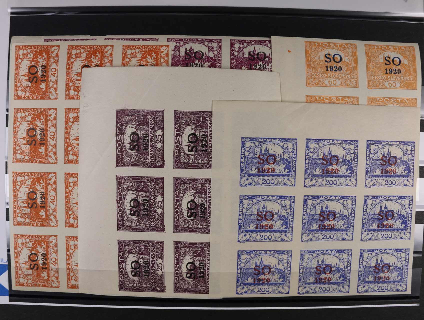zn. SO č. 2 v 15ti-bloku, SO 8 v 9ti-bloku, SO 11 v 18ti-bloku, SO 14a v 6ti-bloku, SO 19 v 9ti-bloku, převážně rohové nebo krajové kusy, kat. cena 1200 Kč