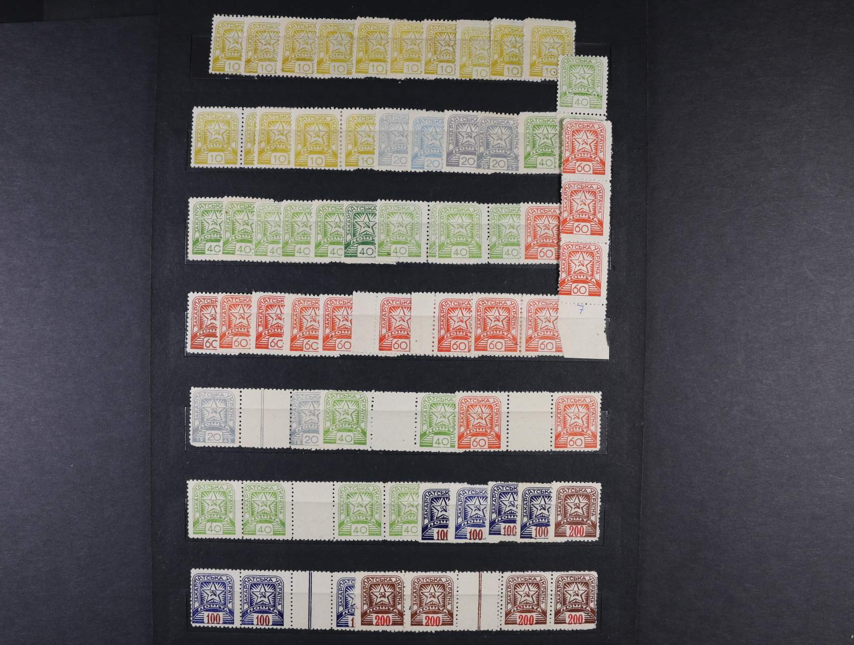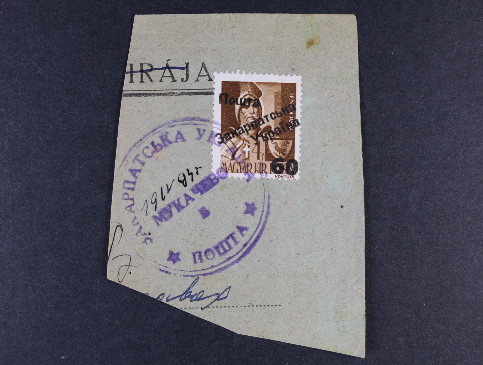 přetisky UŽHOROD II. vydání U 43 na výstřižku s fialovým ručním raz. ZAKARPATSKÁ UKRAJINA POŠTA MUKAČEVO