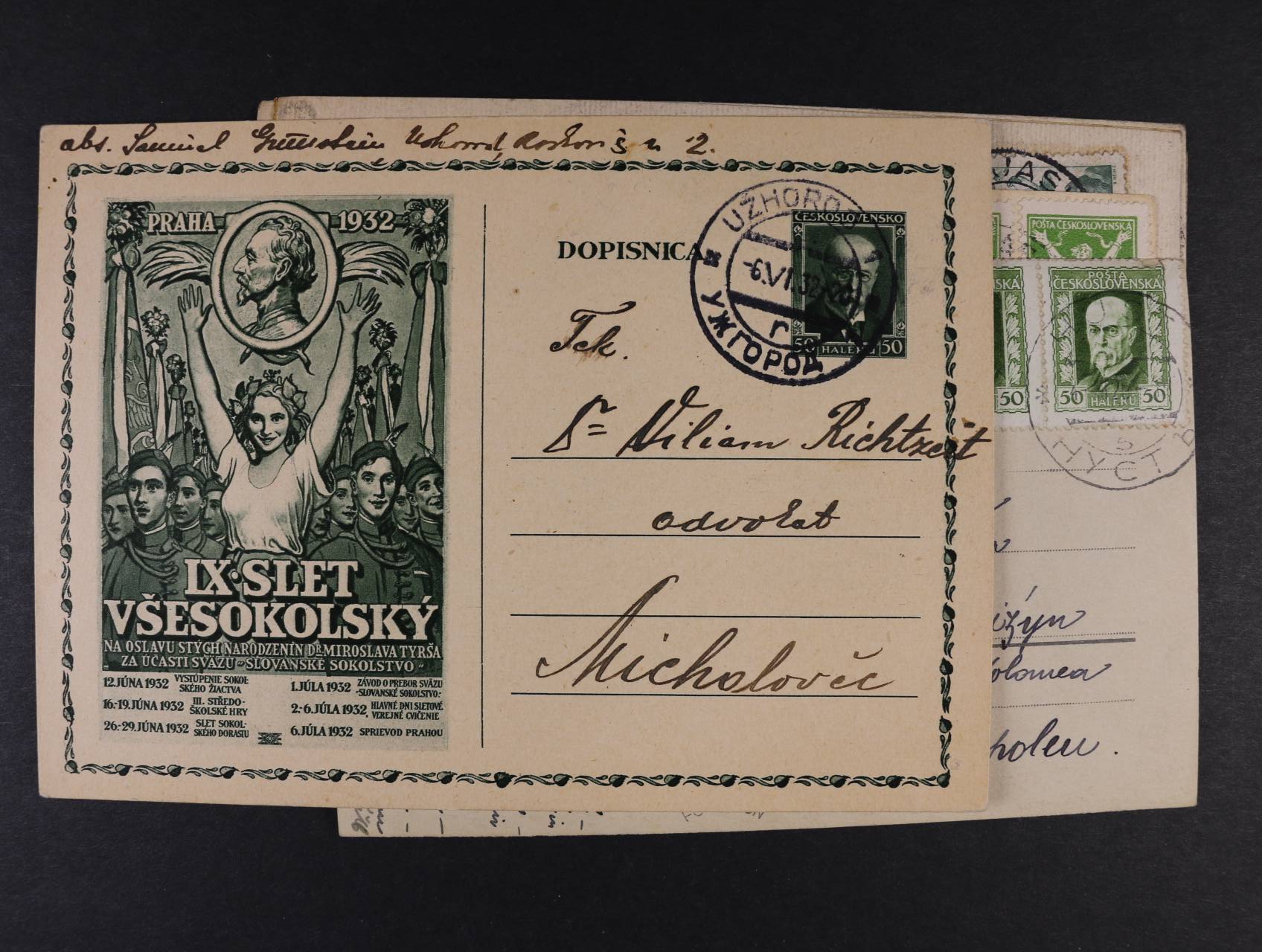 sestava 8 ks dopisů (2x RECO, 1x EXPRES) s raz. TORUN, UŽHOROD, MUKAČEVO, KVASY, ČERNOHLAVA, PERČÍN, SEREDNOJE, SINOVIR, velmi zajímavé