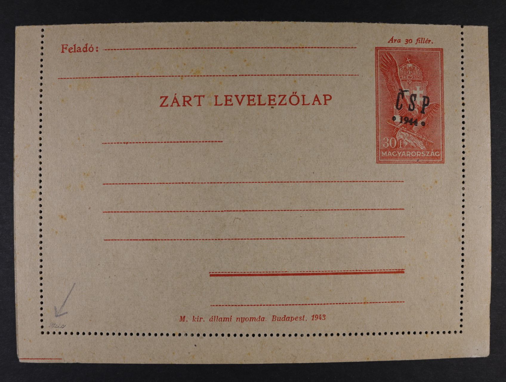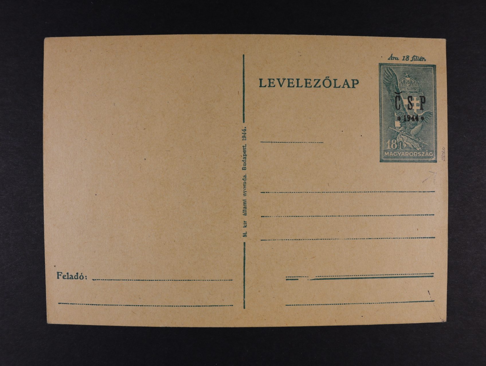 uherská zálepka s přetiskem ČSP 1944, kat. Majer Cd 3 (náklad pouze 244 ks), zk. Blaha, kat. cena 18000 Kč