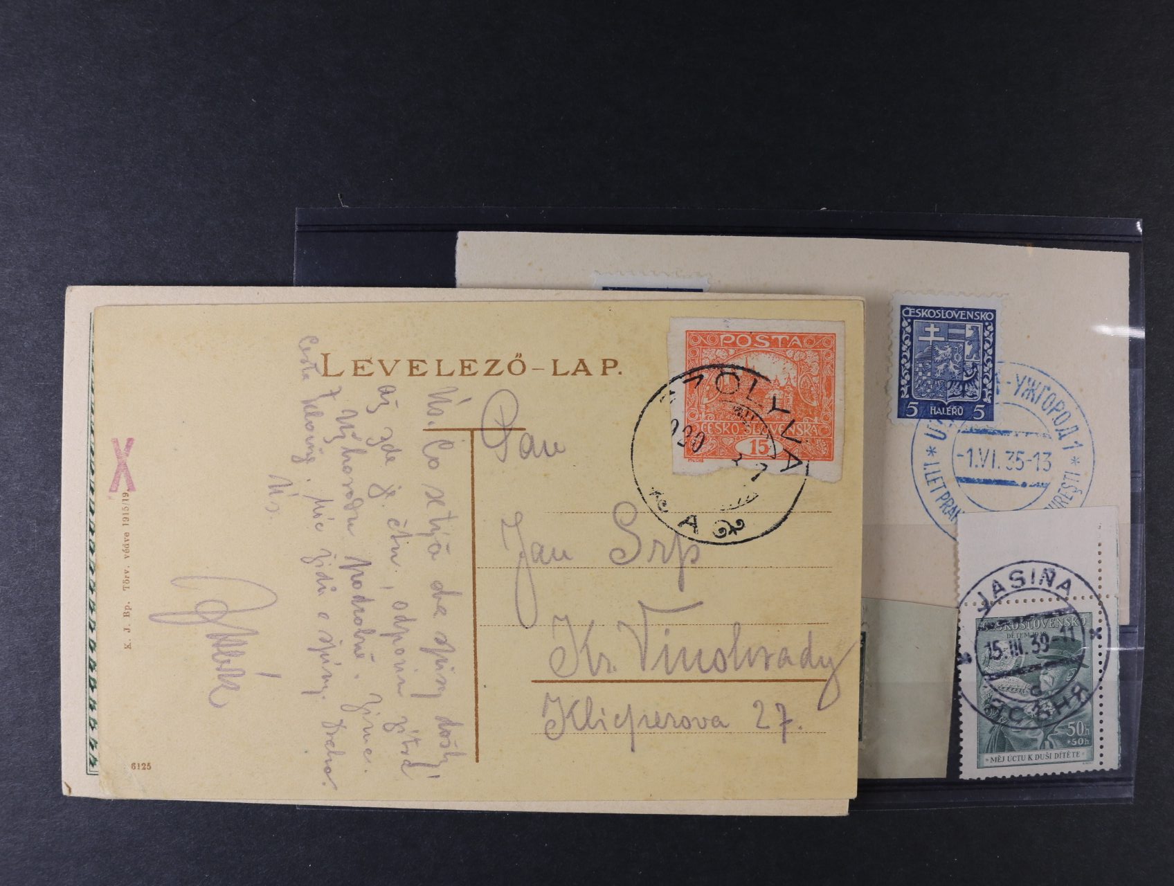 sestava 7 ks celistvostí s raz., mj. VLP č. 993 Jasiňa - Košice, UNGVÁR, UŽHOROD, SZOLYVA + tři výstřižky a dvě zn.
