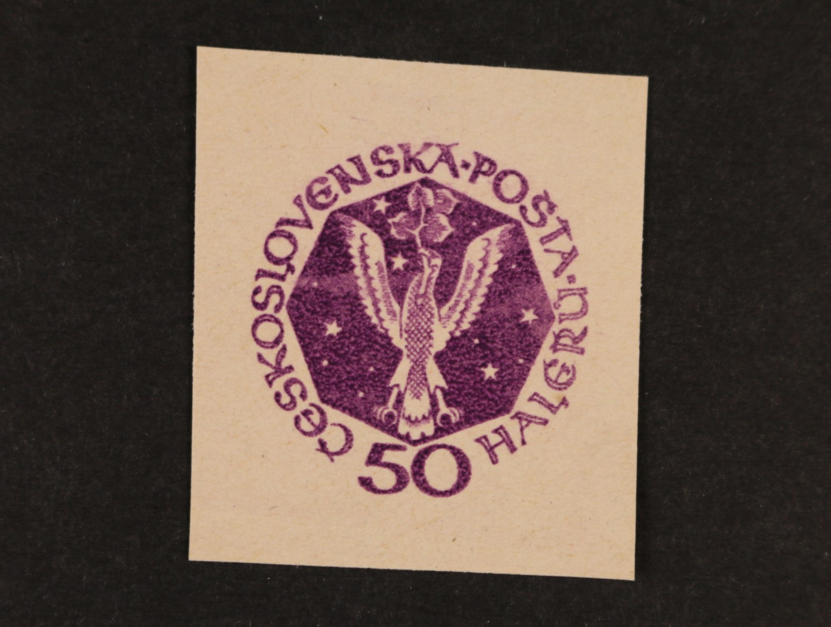 ZT nepřijatého návrhu J. Bendy na zn. 50h sokol v letu (1. soutěž) v barvě fialové