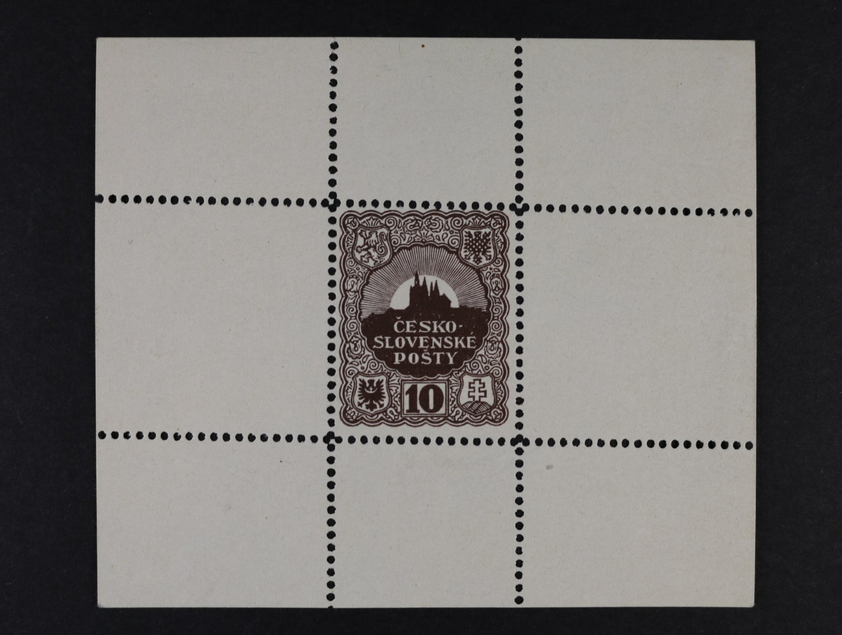 ZT dřevorytu J. Schmidta 10h Hradčany, větší formát v aršíkové úpravě v barvě hnědé na silnějším papíře, ŘZ 11 1/2, zk. Kessler