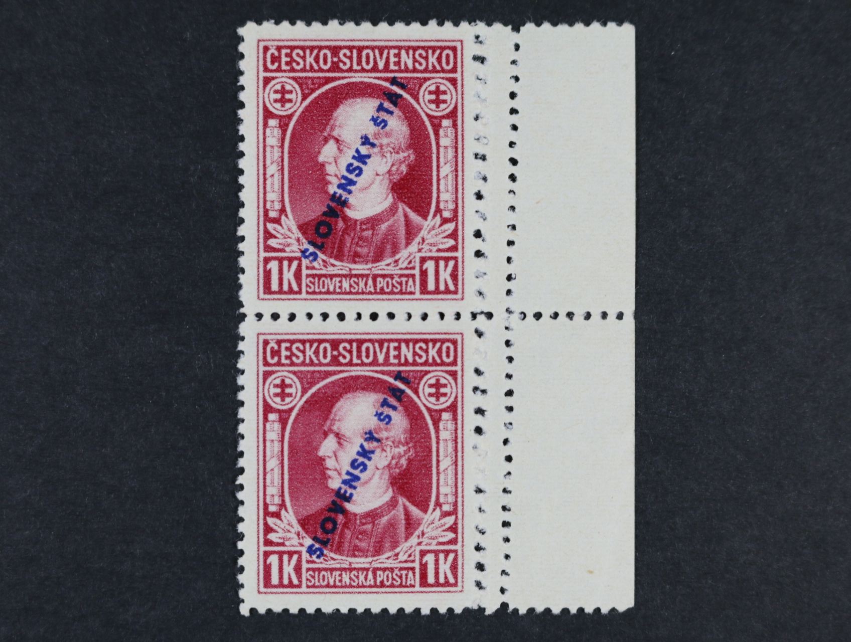 zn. č. 24 A ve svislé dvoupásce s pravým okrajem a dvojitou svislou perforací, zk. Gilbert,