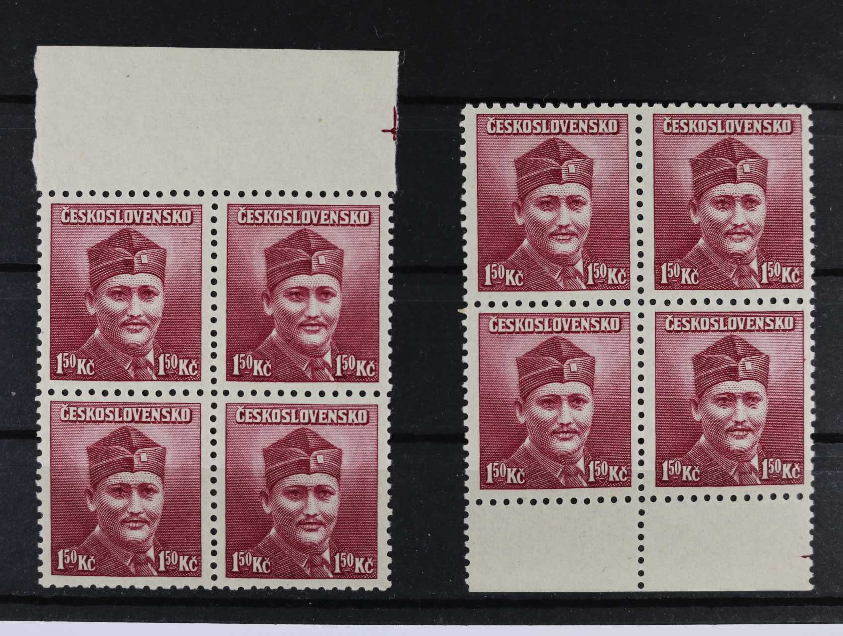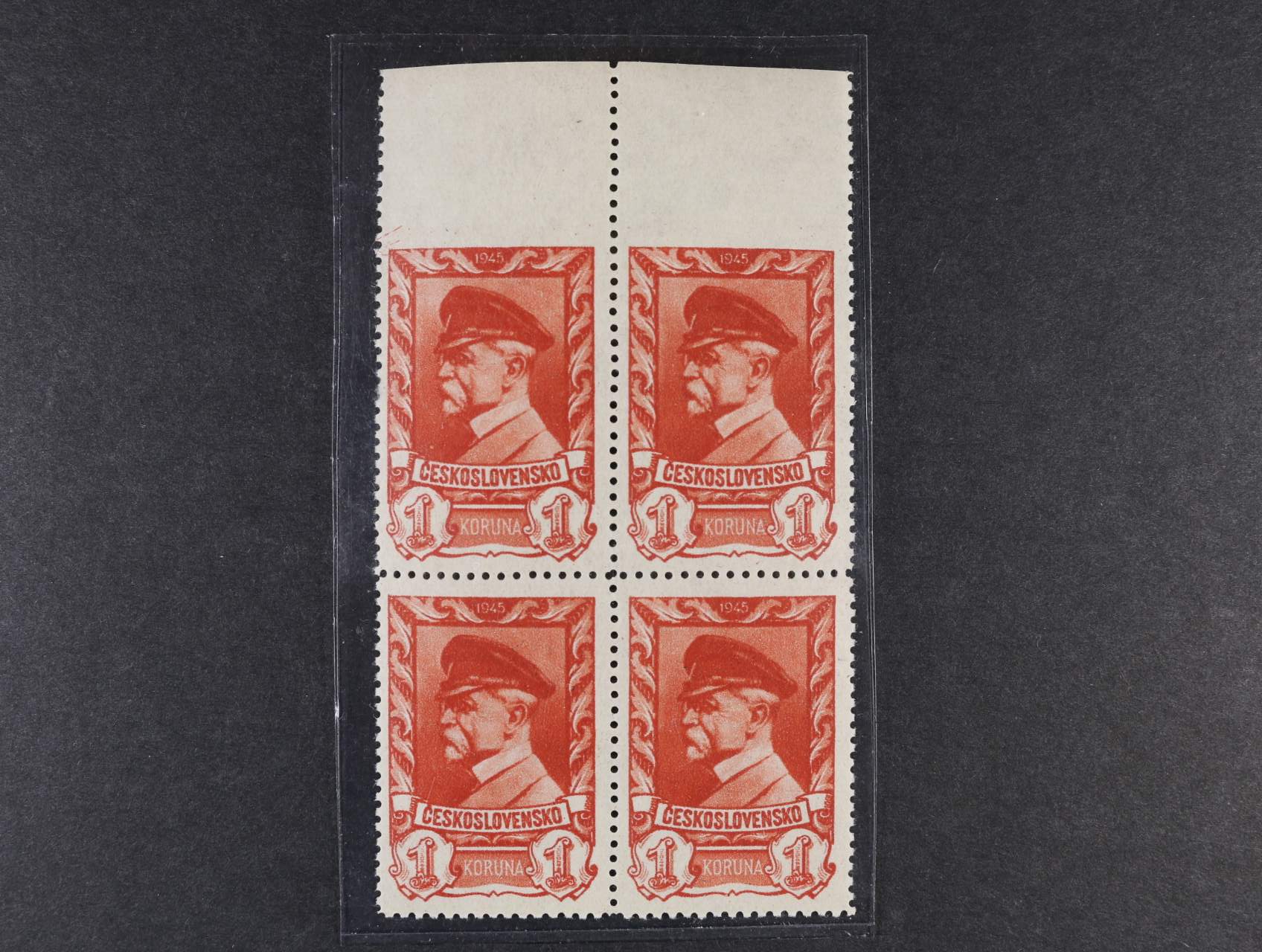 901 zn. č. 355 ve čtyřbloku s horním okrajem a vynechanou horní vodorovnou perforací, kat. cena 1600 Kč 700