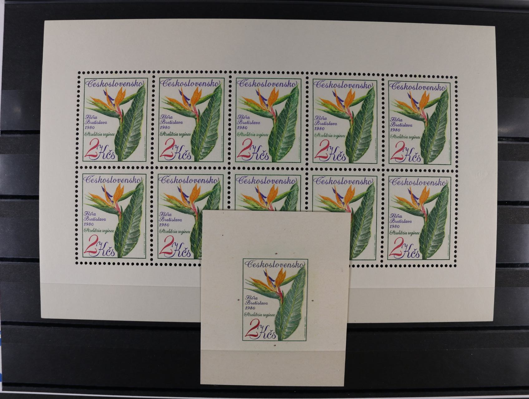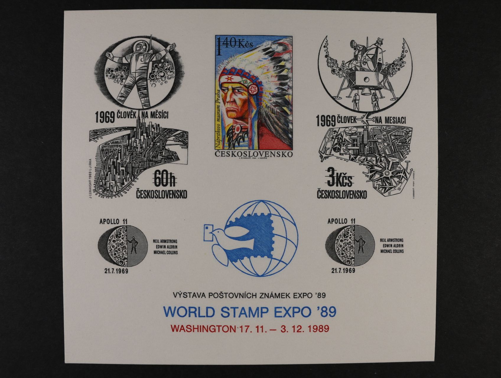 977 PTX (kompl. trojdílná pozvánka na výstavu pošt. známek ...) s natištěnou zn. č. 1991 - 2 v černé barvě + dolepené zn. č. 1991 - 2 s červeným výstavním raz., kat. cena 1700 Kč 1300