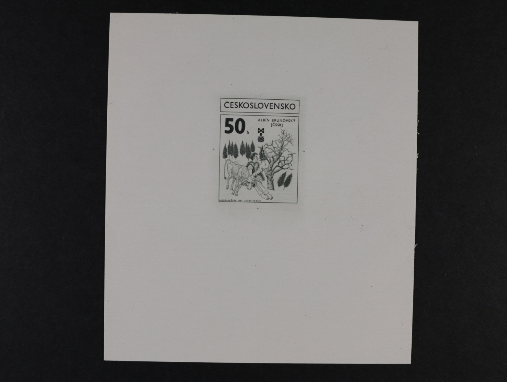 963 otisk orig. rytiny zn. č. 2447 v orig. barvách na kousku kříd. papíru + PL 2447 1100