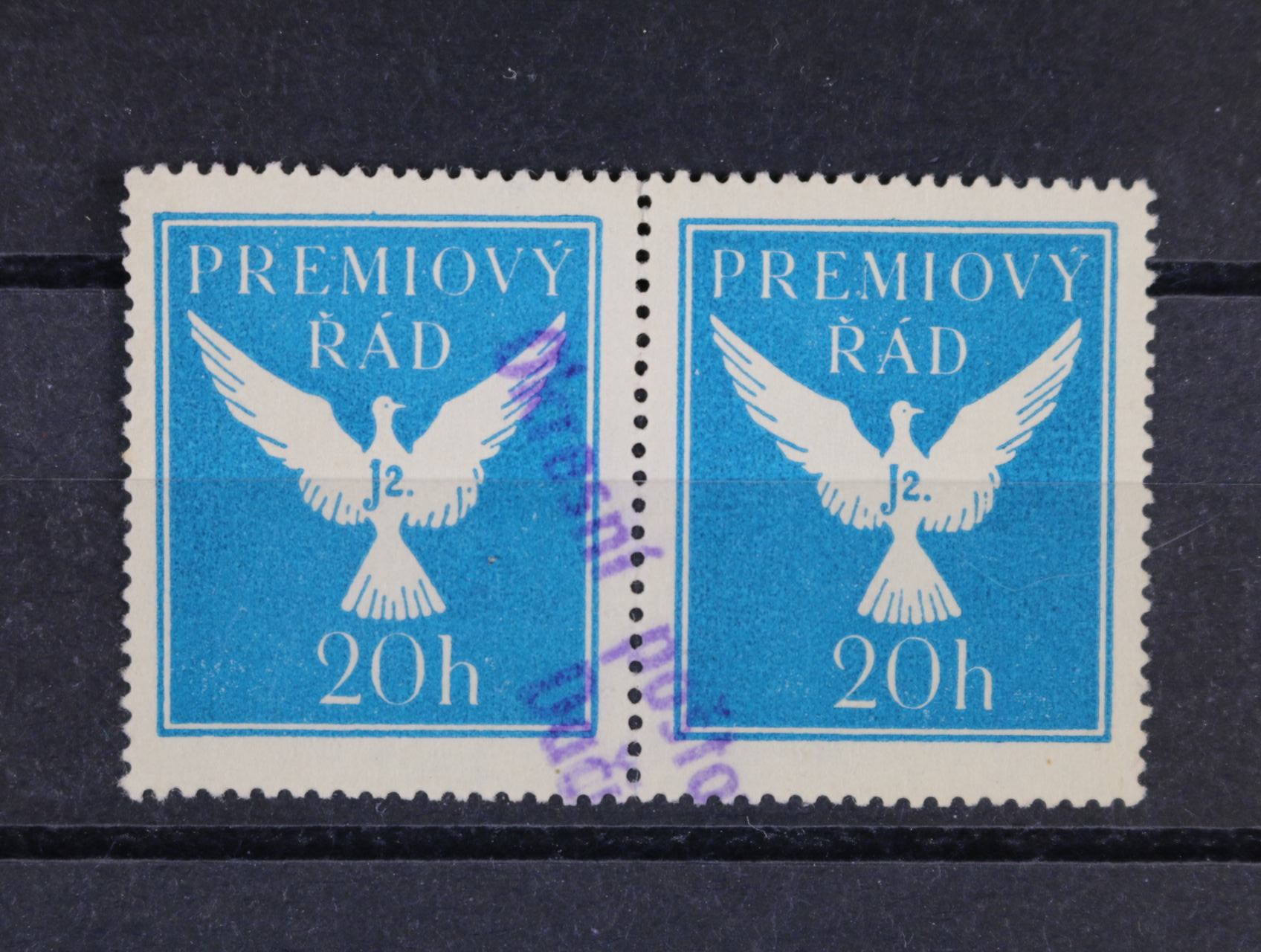 971 zn. prémiového řádu 20h ve vodorovné dvoupásce s dvouřádkovým fialovým nekompl. raz. Okresní pošta ... Dačice 200