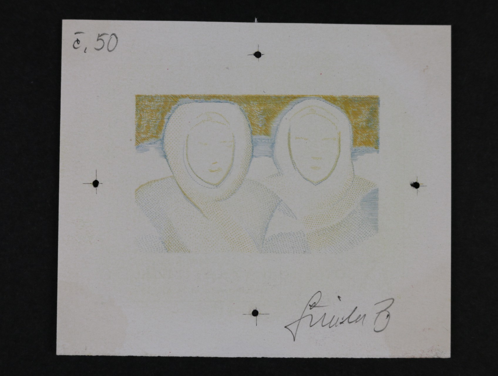 1027 otisk orig. rytiny zn. č. 124 v černé barvě s podpisem rytce + 6ti-páska zn. č. 124 a FDC 800