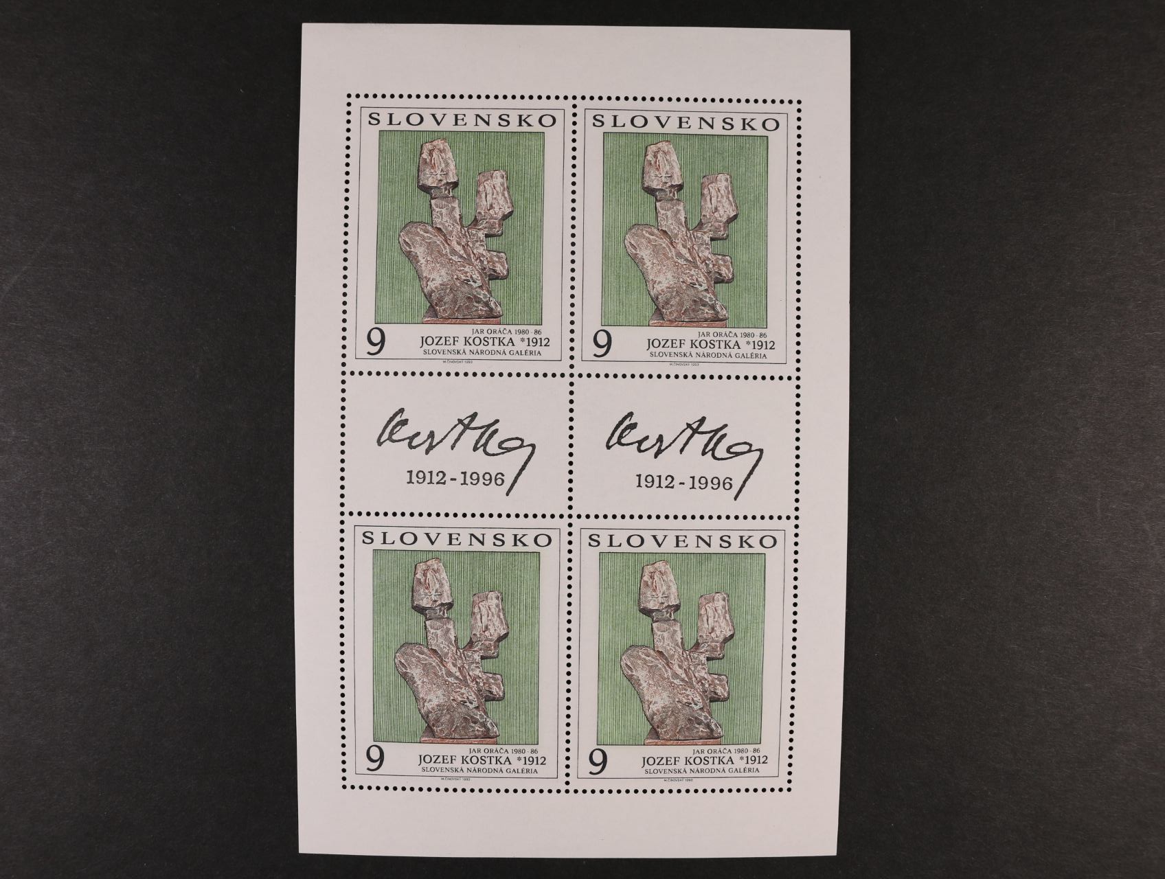 1036 otisk orig. rytiny aršíku č. 179 v černé barvě + otisk rytiny na FDC v modré barvě na kouscích kříd. kartonu s podpisy rytce F. Horniak + orig. aršík + FDC 1200