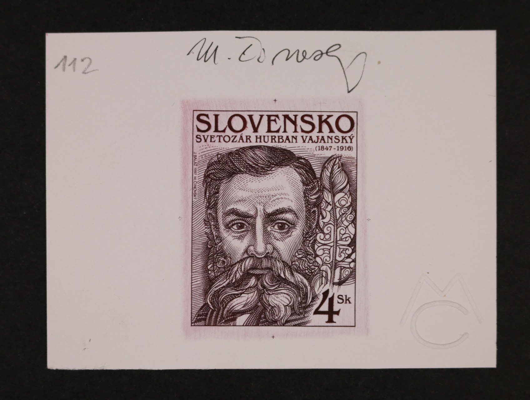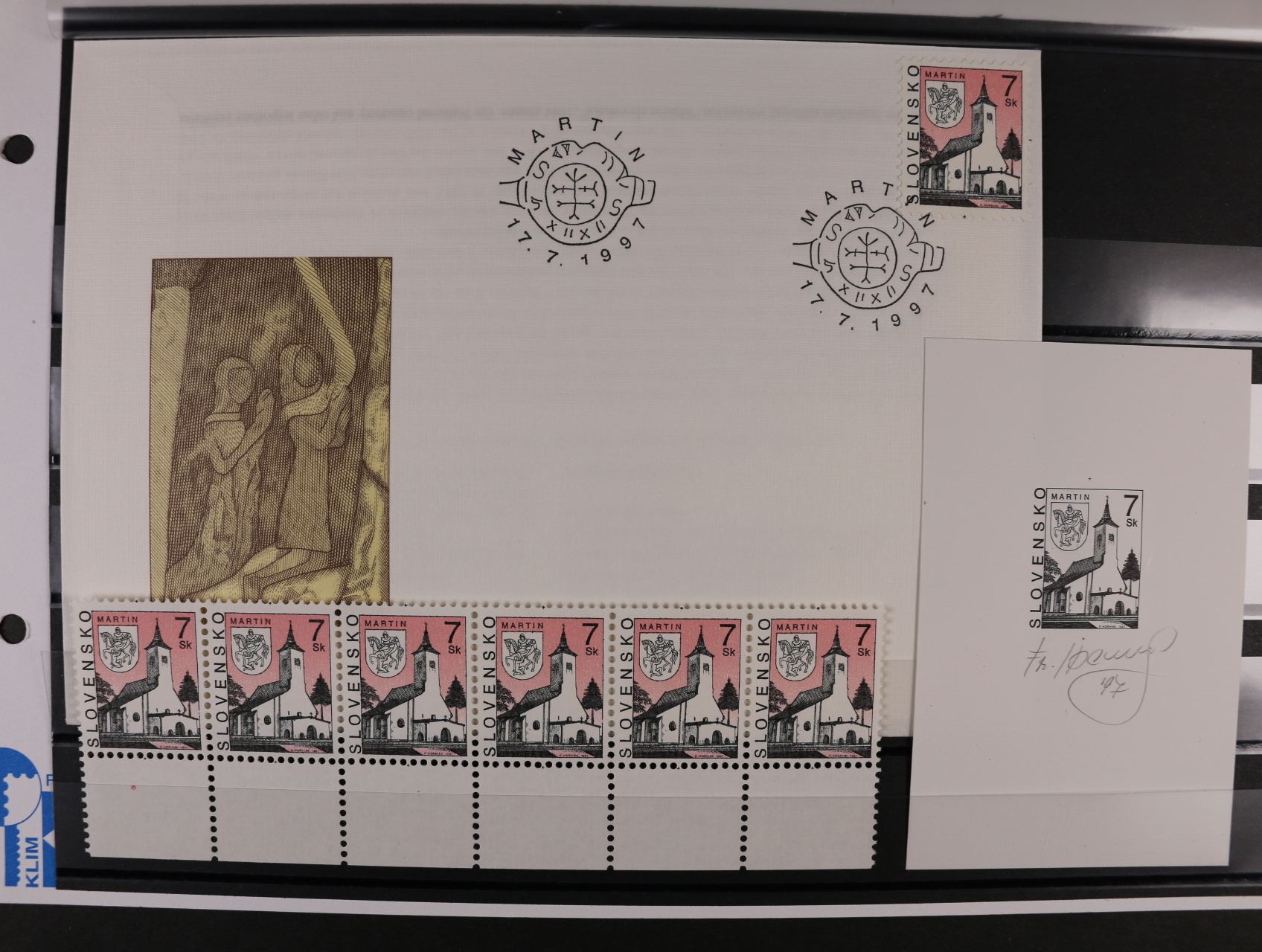 1031 otisk orig. rytiny zn. č. 137 v černé barvě na kousku karton. papíru s podpisem rytce M. Činovský + zn. sešitek, FDC a dvoupáska se spodním okrajem a datem tisku 900