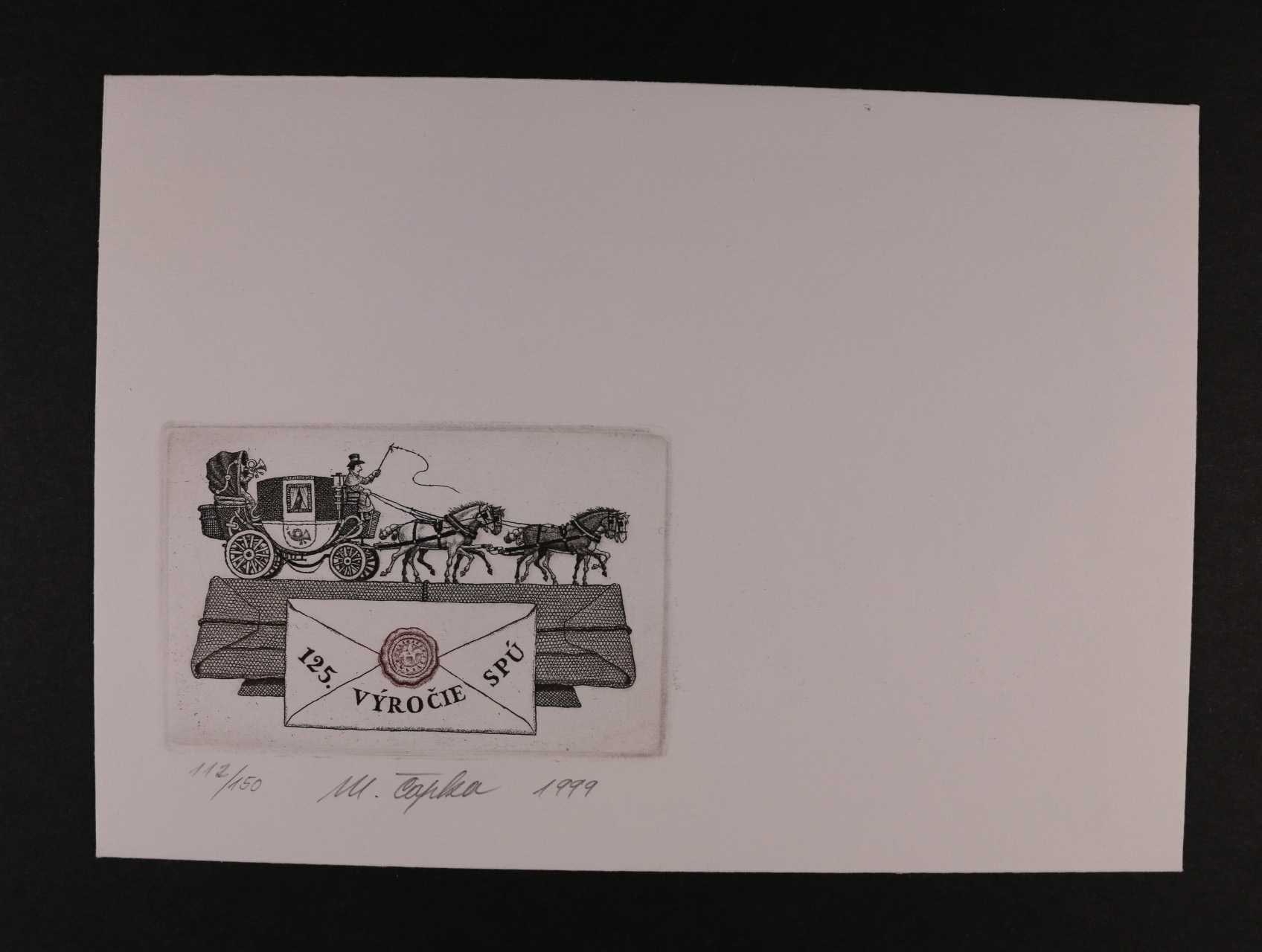 1050 otisk orig. rytiny zn. č. 234 v orig. barvách na kousku papíru s podpisem rytce M. Činovský, otisk rytiny k FDC na kousku papíru s podpisem A.Feke + PL č. 234 s podpisem rytce M. Činovský + FDC 1100
