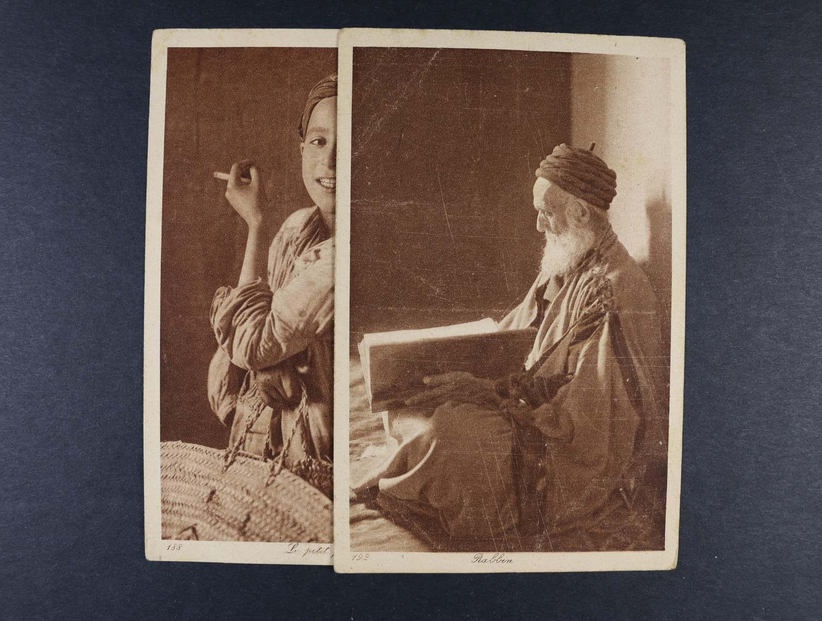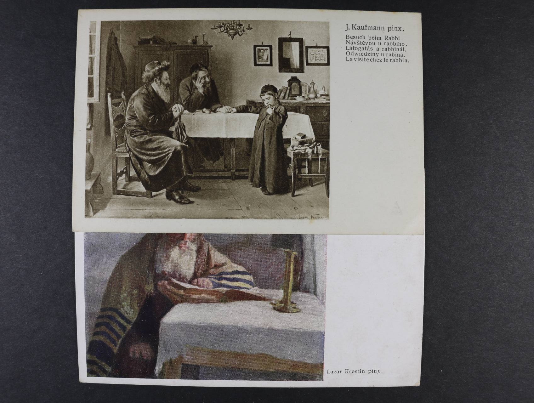 1115 Judaika - sestava 7 ks pohlednic barevných i jednobar. s různými náměty, např. návštěva u rabbího, nepoužité 350