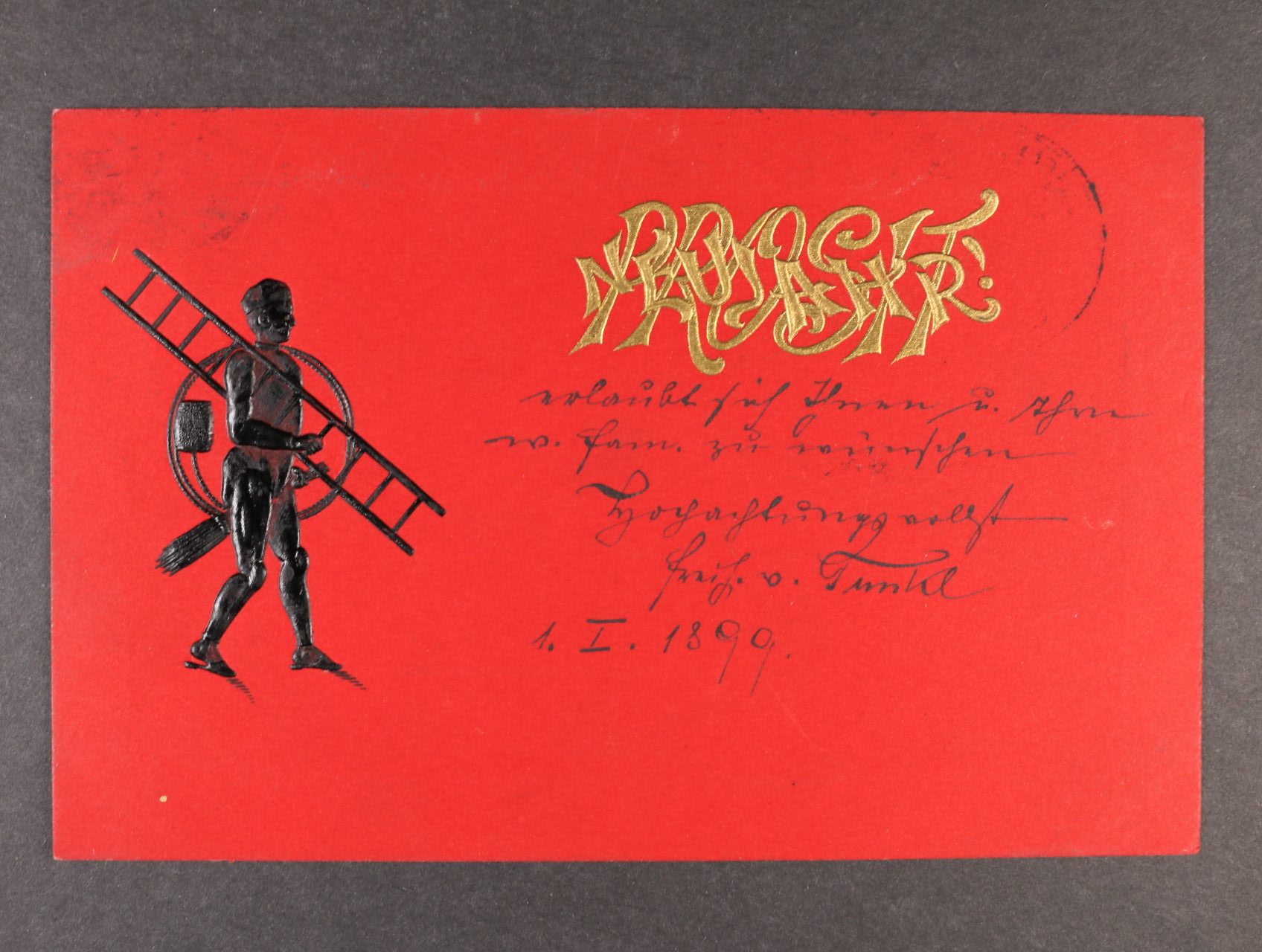 1117 Kominík - dvoubar. reliéfní pohl., dl. adresa, použitá 1898, lux. kvalita 200