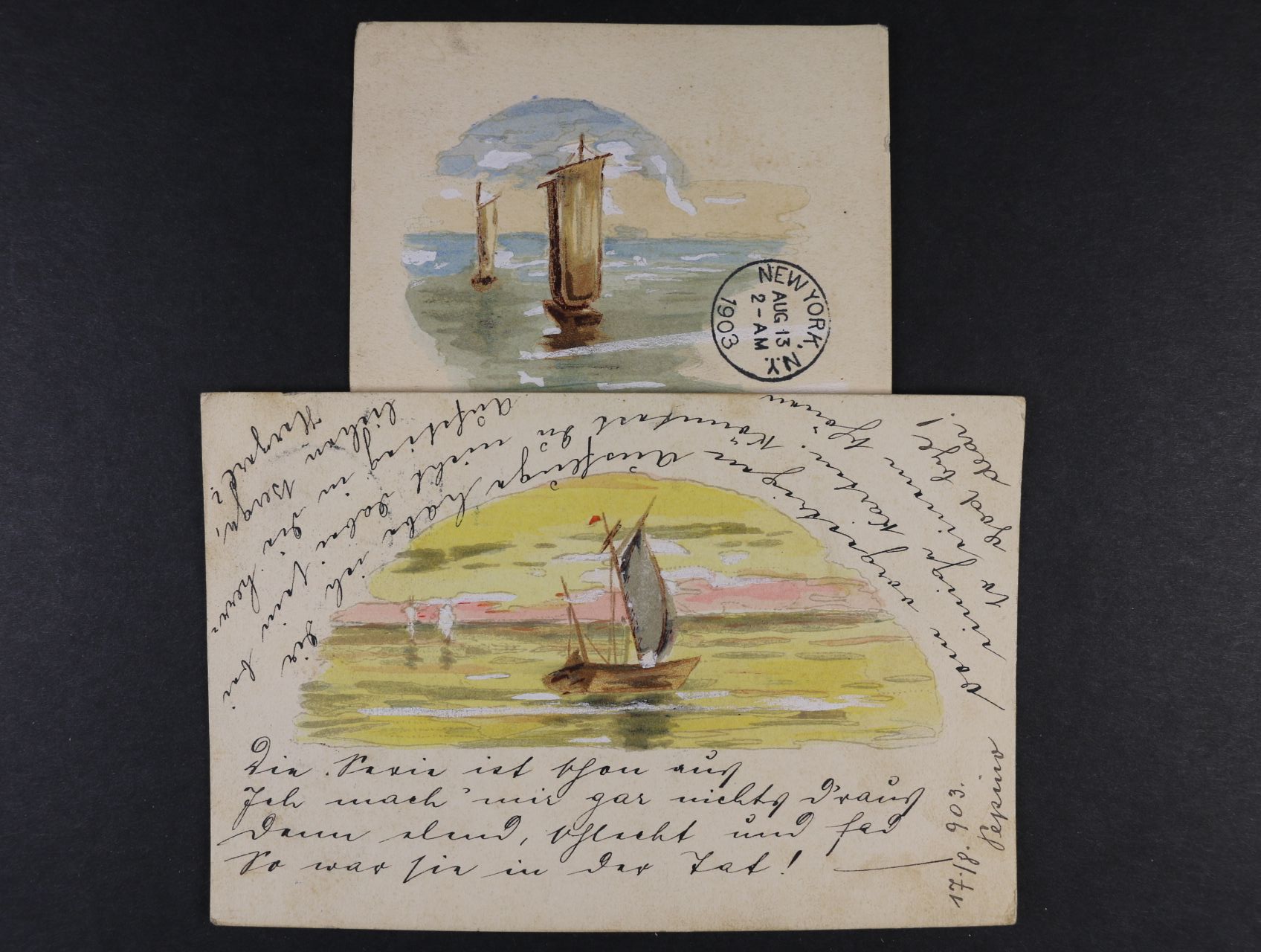 1120 Lodě - sestava 3 ks kolorovaných litografií, dl. adresy, všechny odeslány v r. 1903 do New Yorku 300