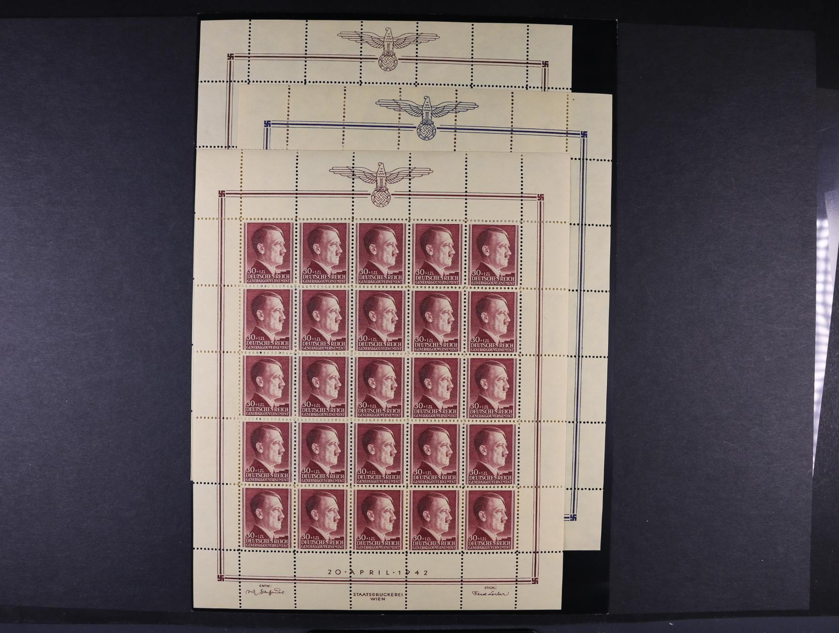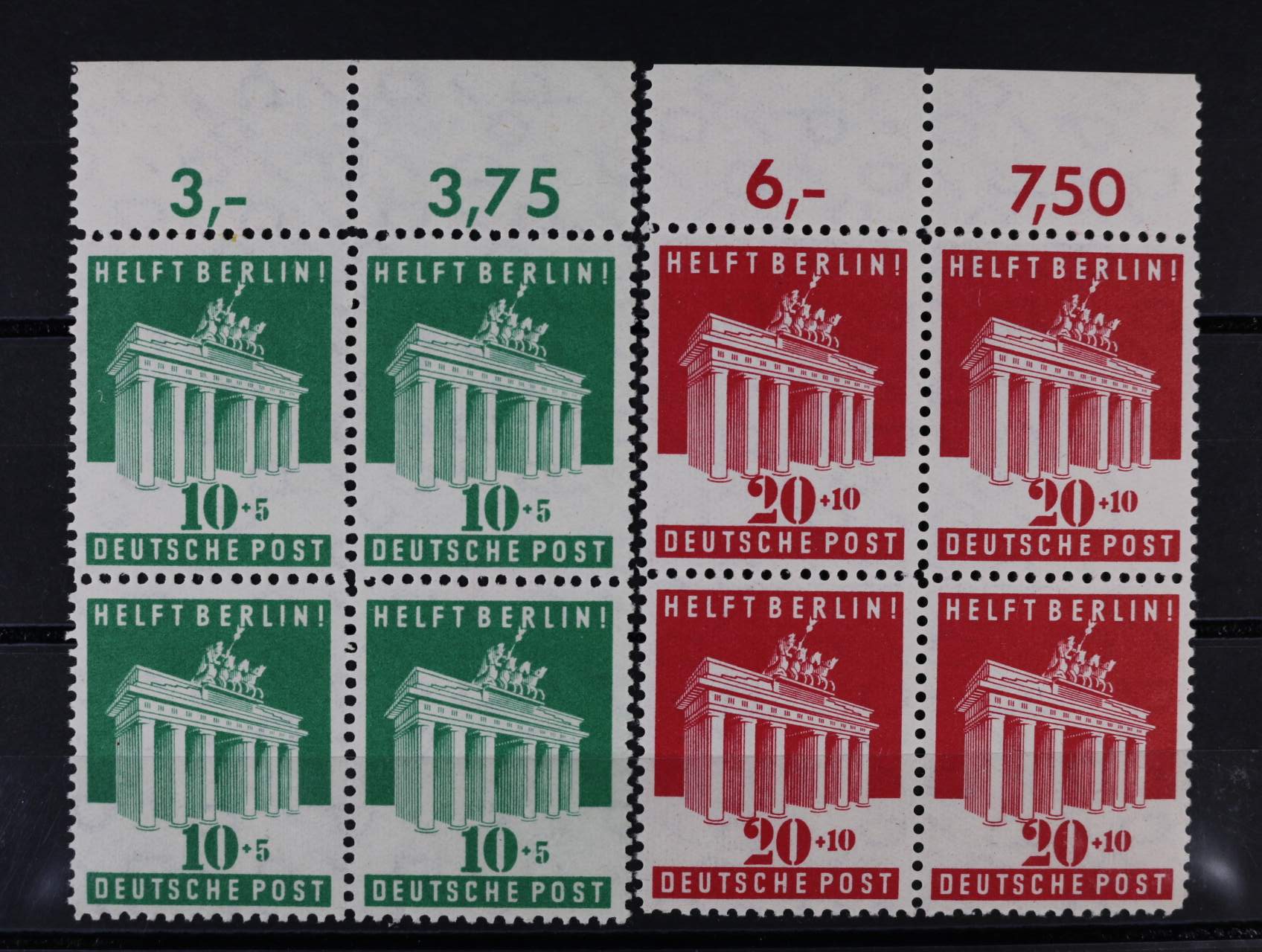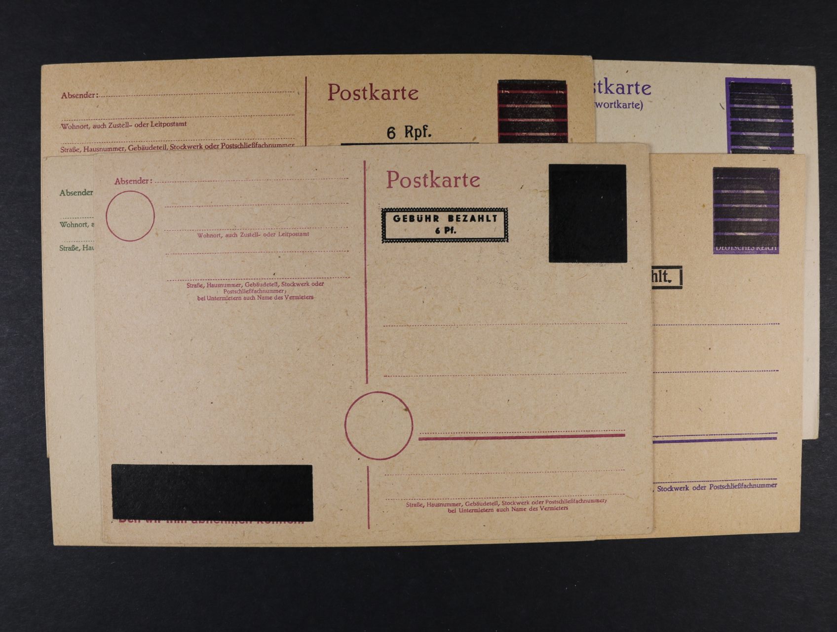 sestava 6 ks KL s portrétem A,H. přetištěným v celé ploše, resp. vodorovnými černými pruhy s dotištěnou novou cenou 5, resp 6Rpf, nepoužité, dobrá kvalita