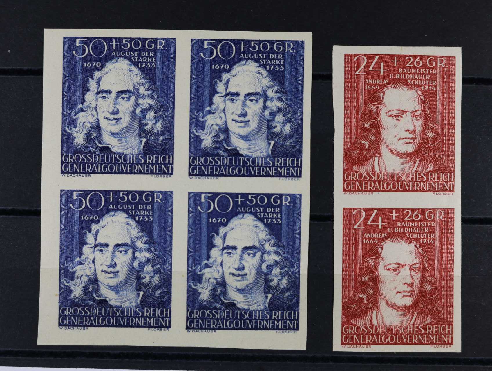 Generalgouvernement - zn. Mi. č. 122 U ve svislé dvoupásce, 123 U ve čtyřbloku, cca 300 EUR