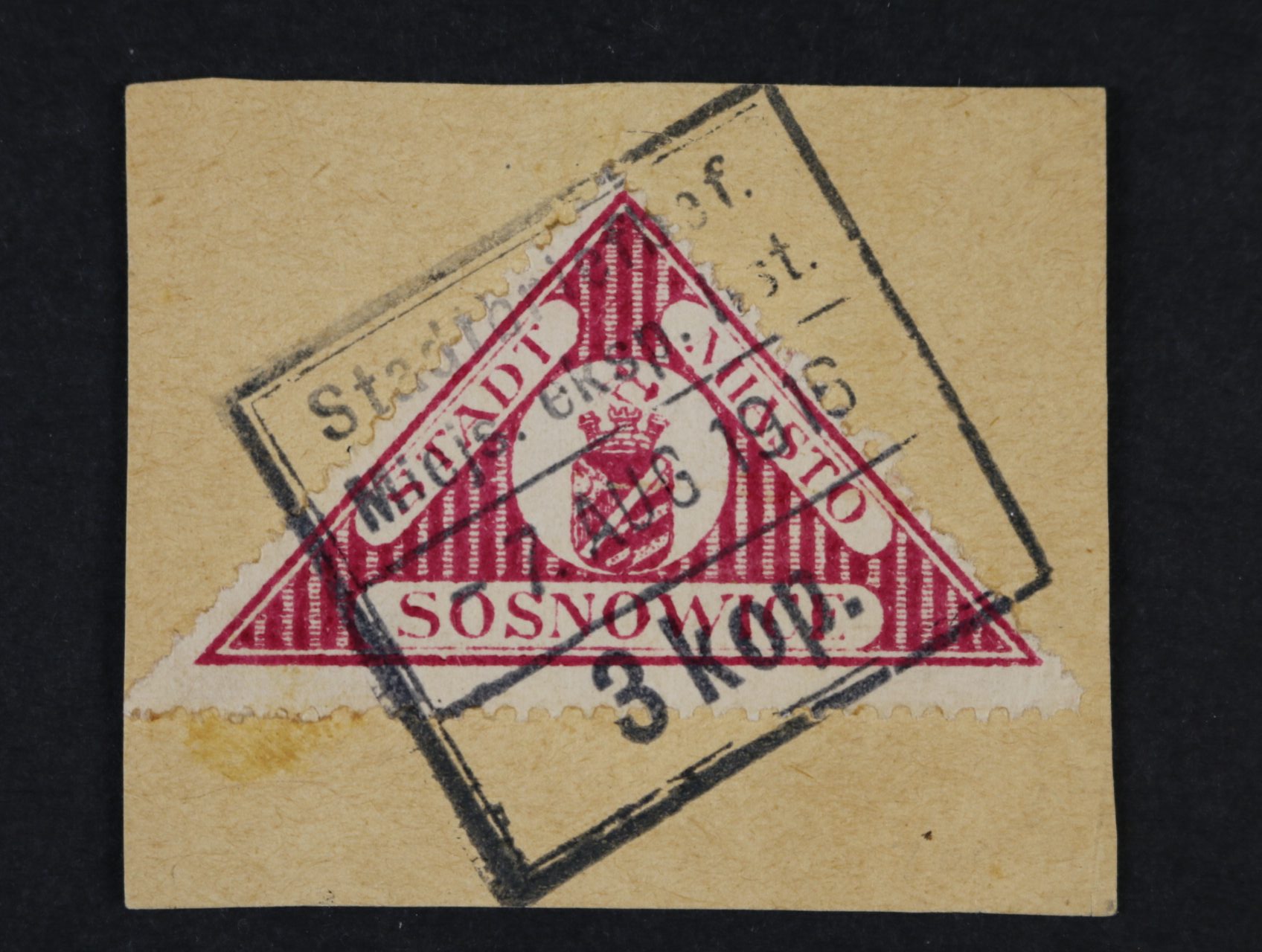 Polsko - Lokalpost Sosnowiec - zn. Mi. č. 5 na výstřižku s rámeč. raz. 7.AUG.1916 3kop.