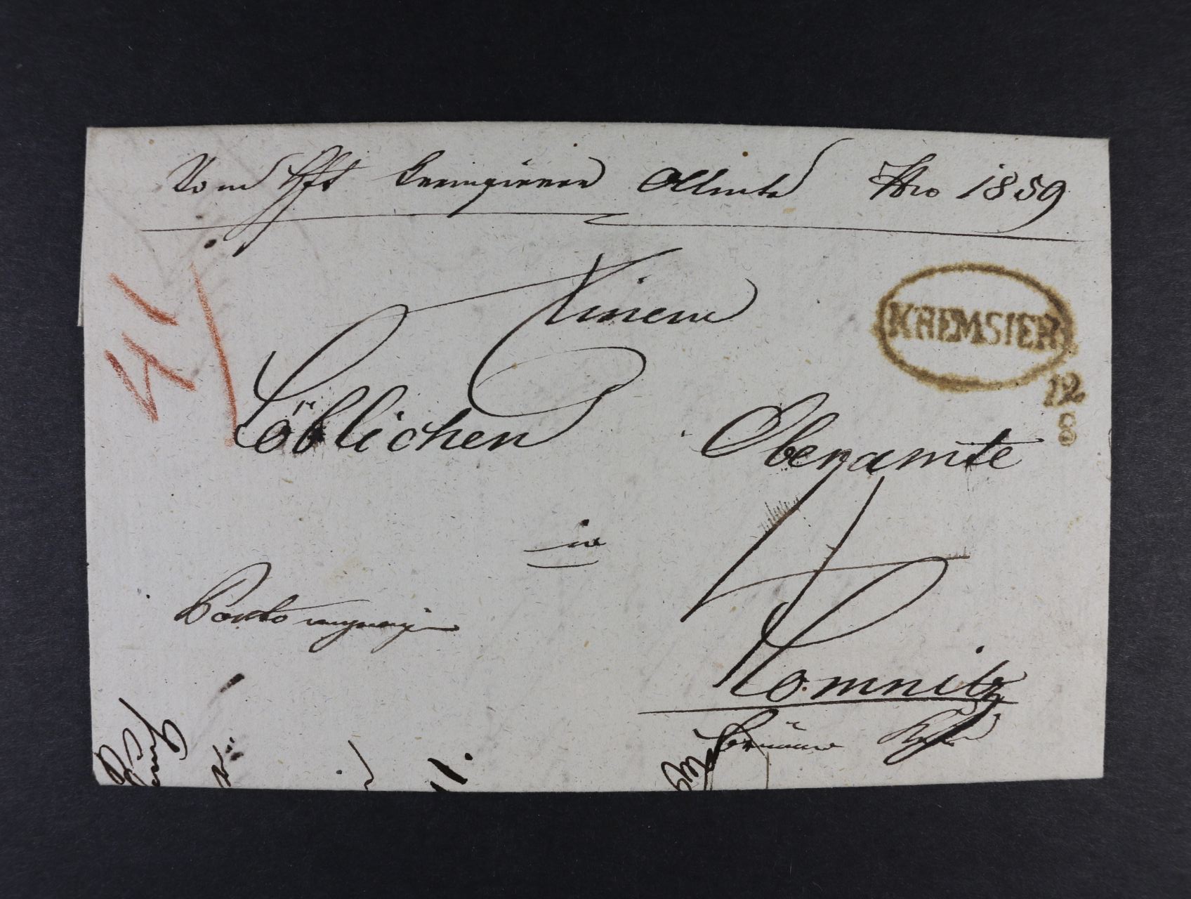 skl. dopis z r. 1841 s oválným raz. KREMSIER 12.8., dobrá kvalita