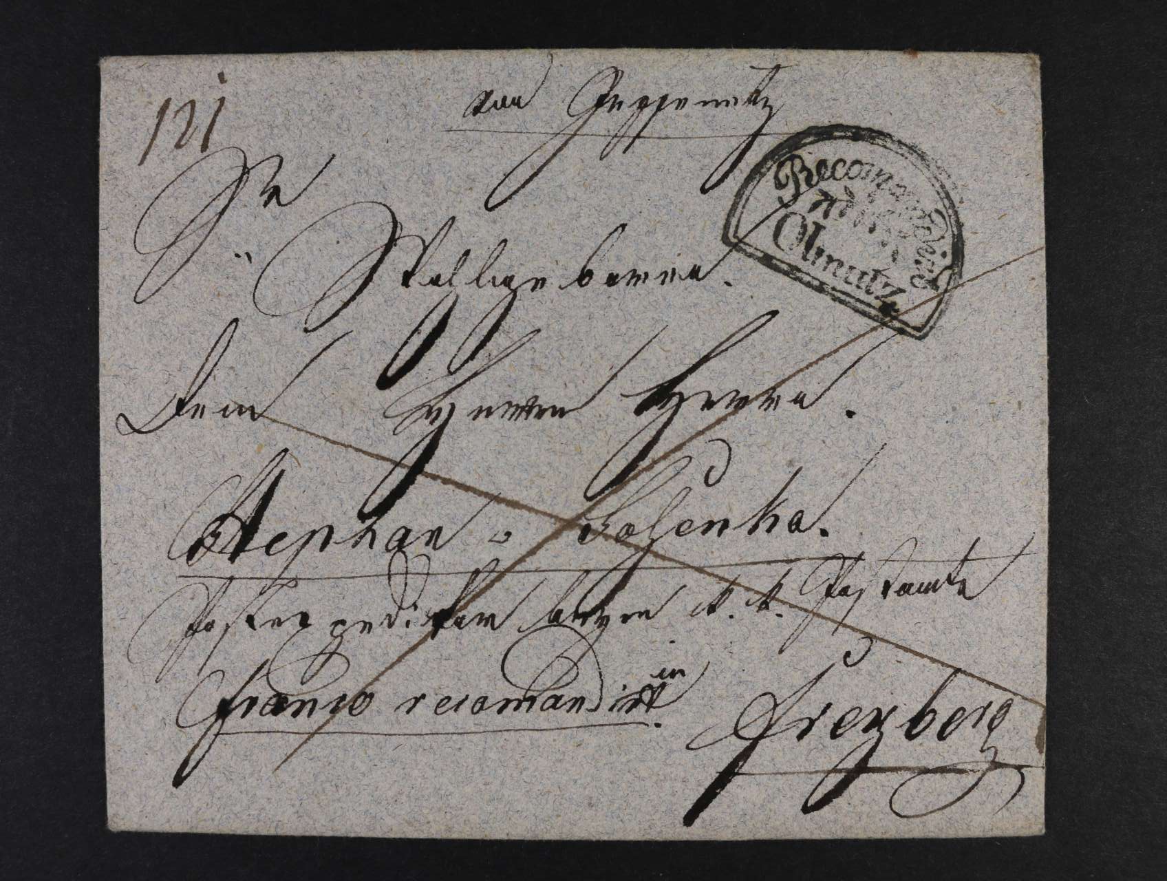 R-dopis malého formátu s ozdobným půlkruh. pod. raz. RECOMANDIERT OLMÜTZ, neporušená pečeť, lux. kvalita