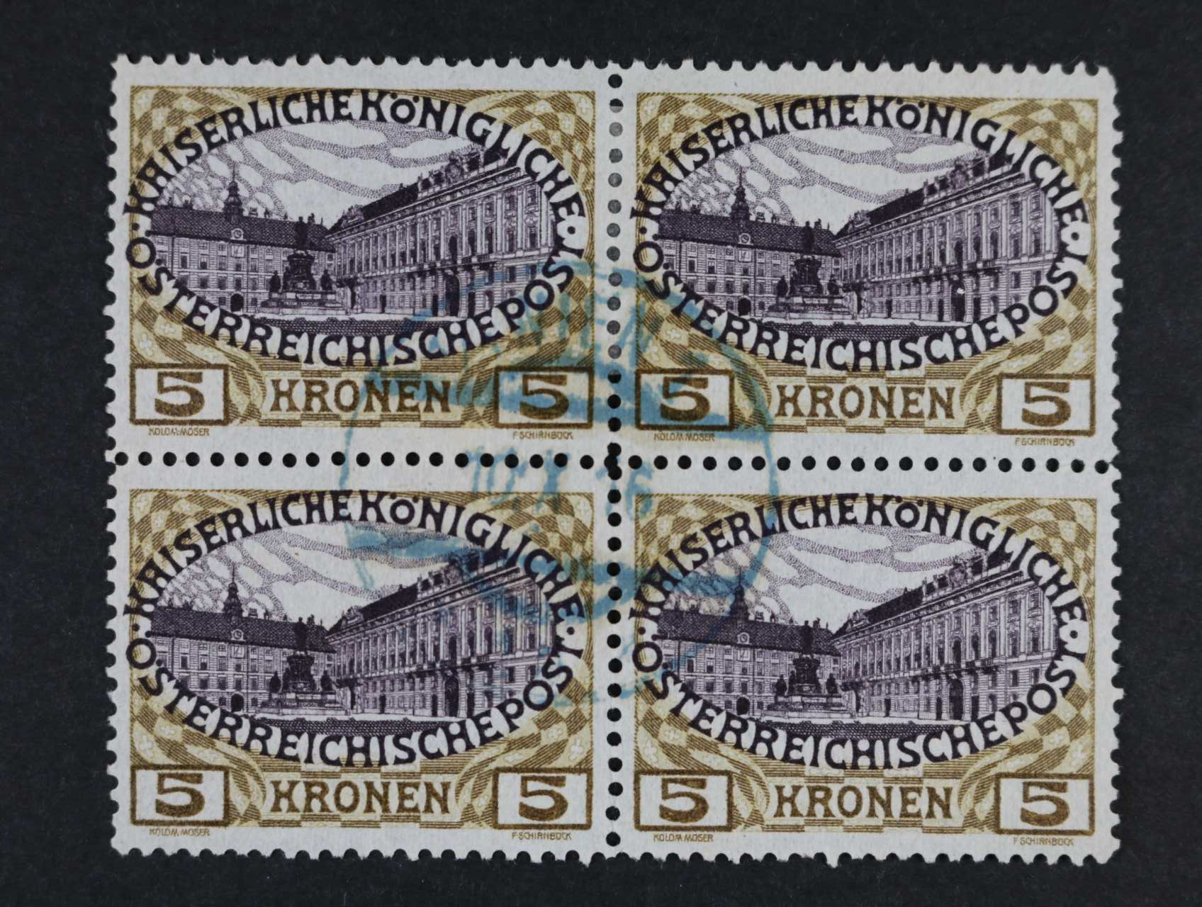 1482 zn. Mi. č. 155 ve čtyřbloku s modrým raz. Wien 300