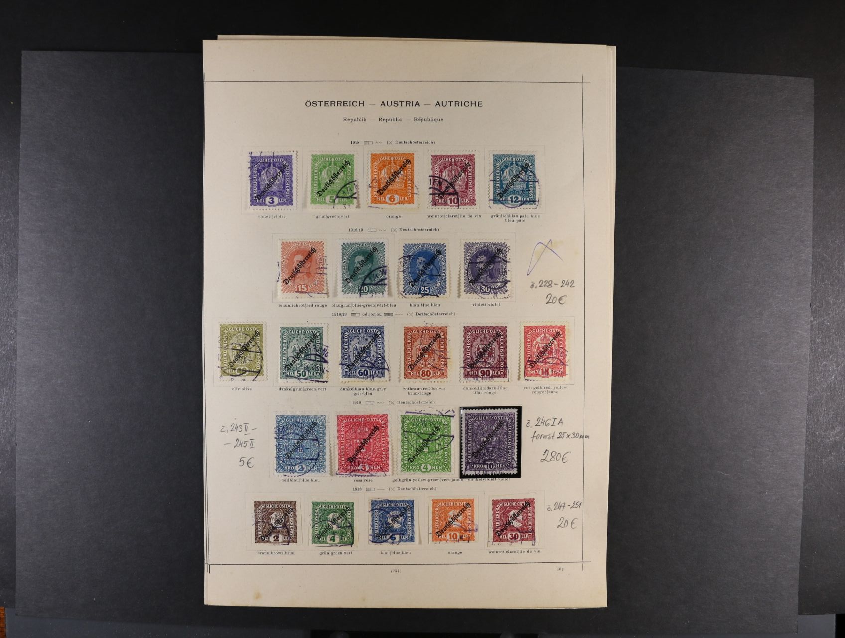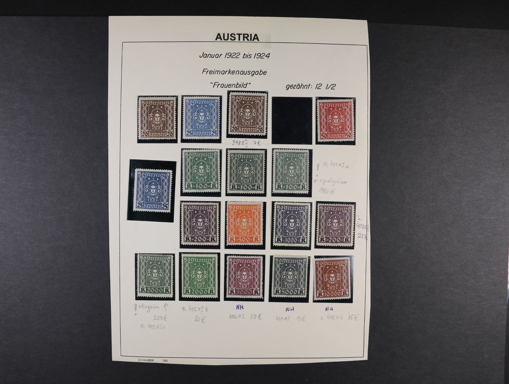 1489 sestava zn. z let 1917 - 20 na pěti listech, kat. cena 410 EUR 800