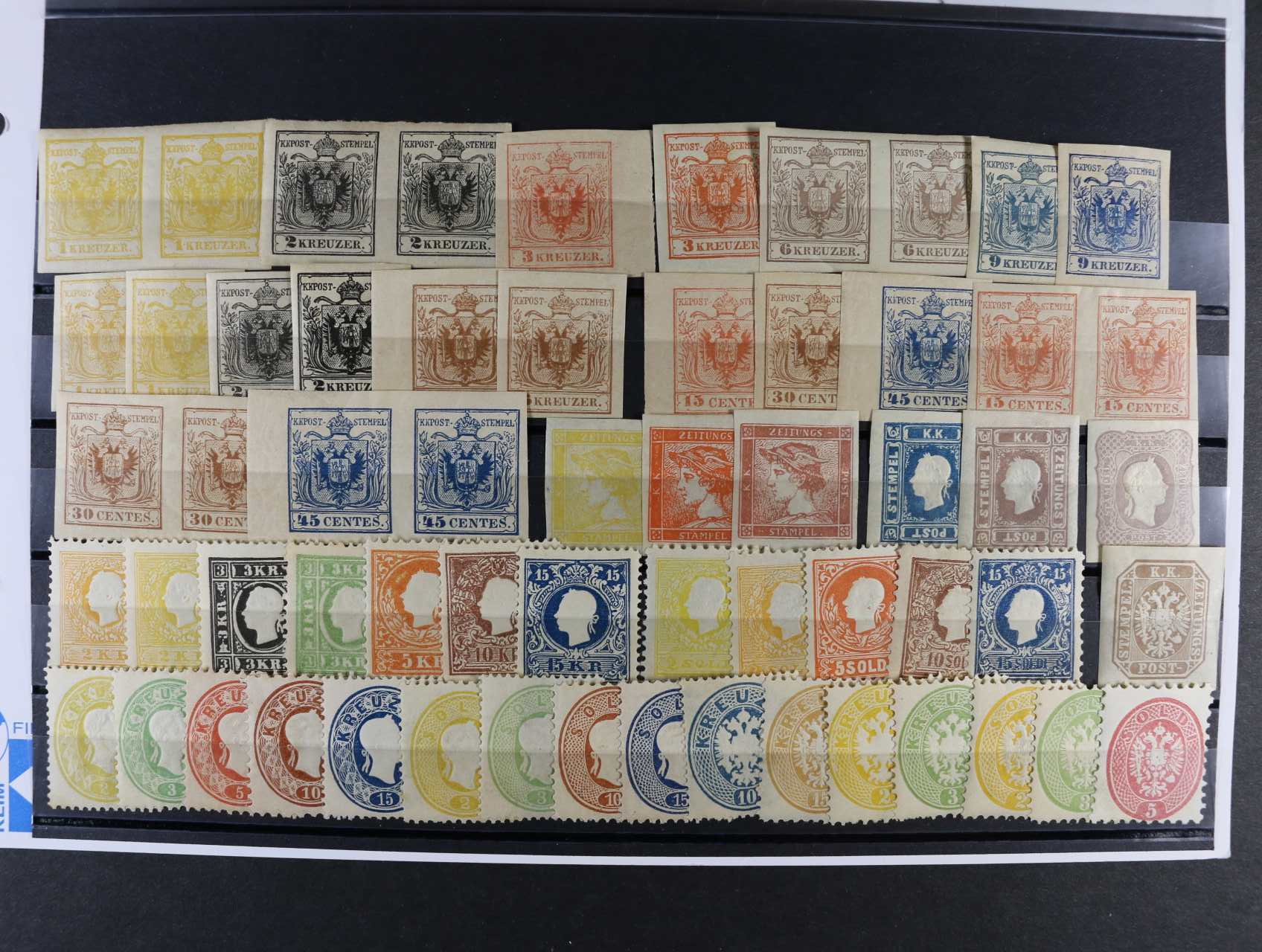 1487 sestava 60 ks novotisků z I. - V. emise Rakouska i Lombardska, v dvoupáskách i jednotlivě, zajímavé 1500