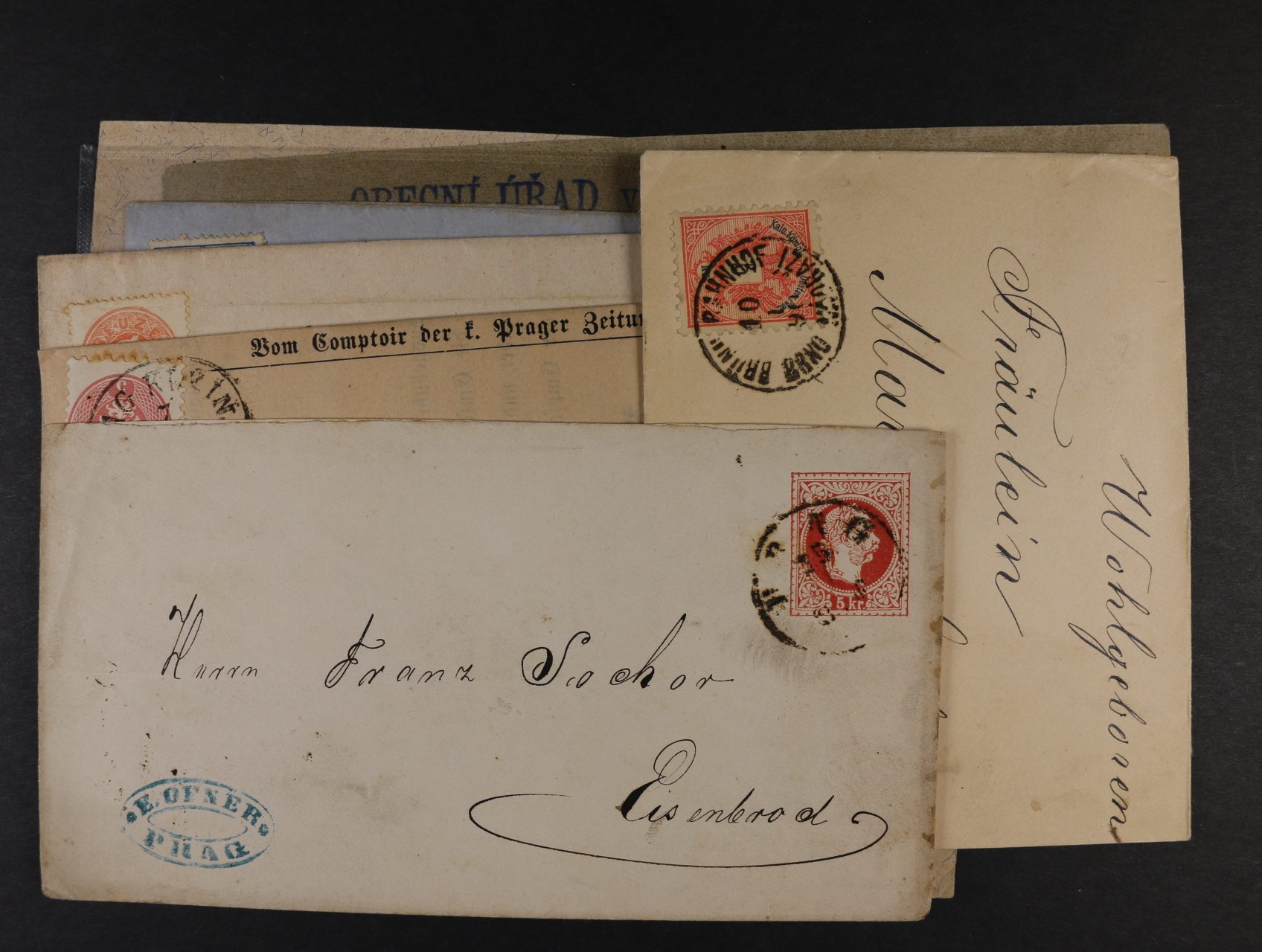 Albánie / Albania Belgie / Belgium Bosna a Hercegovina / Bosnia - Herzegovina Celiny ČSR I / Postal stationery Celiny od r. 1945 / Postal stationery after 1945 Červený kříž 1920 / The Red cross Česká republika / Czech Republic Česká republika celiny / CR postal stationery Československo od r. 1945 celistvosti / CS after 1945 entires Československo od roku 1945 / CS after 1945 Dánsko / Denmark Doplatní, OT a Doruční / Postage due and Printed matter Exilové - výstavní aršíky Francie / France Frankotypy 1918 - 39 / Frank - cancellers Gibraltar / Gibraltar Holandsko / Nerherlands Holubice 1920 / Dove Hospodářství a věda 1920 a 1923 / Agiculture and science 1920 and 1923 Hradčany - Vzorce, návrhy, zkusmé tisky a ostatní Hradčany 1918 Hradčany celistvosti / entires Hrady, krajiny a města 1926 Husita 1920 / The Hussite Island / Iceland Itálie / Italy Judaika / Judaica Jugoslávie / Yugoslavia Koncentrační tábory a věznice, tábory / Concentration Camps, Camps Legionářské 1919 / Legionnaire 1919 Letecké 1918 - 1939 / Airmail Letecké 1945 - 1992 / Airmail Lichtenštejnsko / Lichtenstein Literatura / Literature Lucembursko / Luxembourg Maďarsko / Hungary Makedonie Malta / Malta Masaryk 1920 Masaryk 1923 - 1926 Německo polní pošta / Germany field post Německo - Berlín / Germany Berlin Německo - Danzig / Germany Danzig Německo - NDR / GDR Německo - obsazené území / German occupation Německo - okupační zóny / German occupation zone Německo - pošta v zahraničí / Germany post abroad Německo - Sársko / Germany Saarland Německo - Staroněmecké státy / German States Německo 1870 - 1945 / Germany 1870 - 1945 Německo 1870 - 1945 celistvosti / Germany entires Německo celiny / Germany postal stationery Německo SRN / GFR Norsko / Norway Novinové / Newspaper Ostatní do roku 1939 / Others Ostatní od roku 1929 / Next from 1929 Osvobozená republika 1920 / The Liberated Republic Perfiny Podkarpatská Rus 1918 - 39 / Transcarpathia 1918 - 39 Podpisy a autogramy Polní pošta / Field post Polsko / Poland Portugalsko / Portugal Pošta Československá 1919 Pošta Československá 1919 celistvosti / entires Poštovny Praha - Tatry 1926 Předběžné Protektorát Č a M. celiny / B. a M. postal stationery Protektorát Č. a M. / Bohemia a Moravia Protektorát Č. a M. celistvosti / B. a M. entires Protektorátní známky použité po r. 1945 / Protectorate stamps used after 1945 Protichůdné dvojice / téte-béche Provizorní razítka po r.1945 Rakousko - Lombardsko Benátsko Rakousko - pošta v zahraničí / Austria post abroad Rakousko - předznámkové období / Austria prestamp period Rakousko 1850 - 1918 / Austria from 1850 to 1918 Rakousko 1850 - 1918 celistvosti / Austria from 1850 to 1918, entires Rakousko celiny / Austria Postal stationery Rakousko I. republika 1918 - 45 / Austria republic 1918 - 45 Rakousko II. republika od roku 1945 / Austria republic from 1945 Rakousko lodní pošta / Austria seapost Rakousko polní pošta / Austria field post Rakousko poštovní formuláře / Austria postal form Razítka vlakové pošty Řecko / Greece Revoluční přetisky 1918 / Revolution overprints 1918 Revoluční přetisky a vydání / Revolution overprints 1945 Rumunsko / Romania Rusko a SSSR / Russia and USSR Různé / Various Sbírky / Collections Skauting Skautské / Scout issue Slovenská republika / Slovak Republic Slovensko 1939 - 45 / Slovakia 1939 - 45 Slovensko 1939 - 45 celistvosti / Slovakia entires SO 1920 Souběžné Španělsko / Spain Spěšné / Special delivery Sport a OH / Sports and Olypics Srbsko / Serbia Sudety / Sudetenland Švédsko / Sweden Švýcarsko / Switzerland Ukraina / Ukraine Velká Británie / Great Britain ZÁMOŘÍ / OVERSEAS Zeppelinová a Katapultová pošta / Zeppelin and Catapult Mails