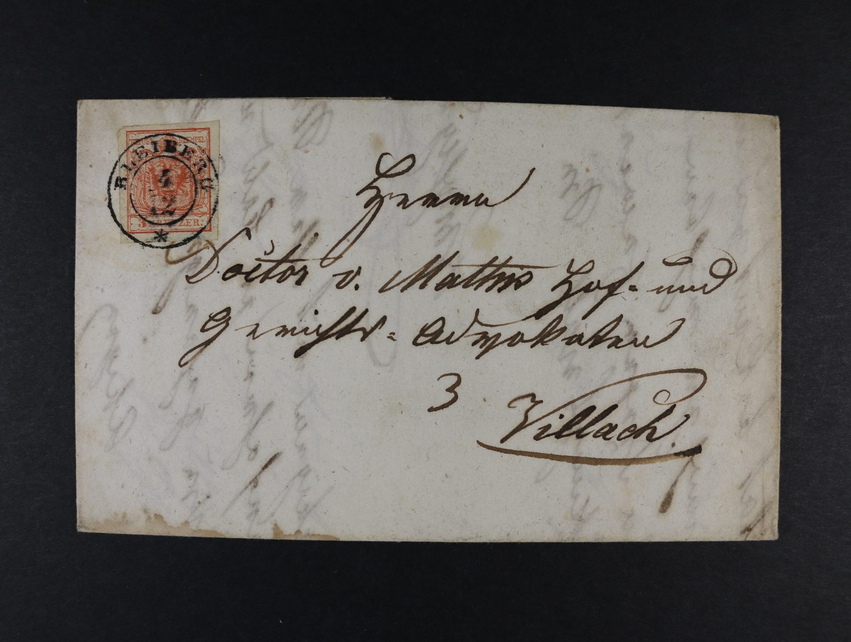 1494 skl. dopis z r. 1852 frank. zn. Fe. č. 3 HP, typ III, lux. střih, pod. raz. BLEIBERG 4.12. + přích. raz. 300
