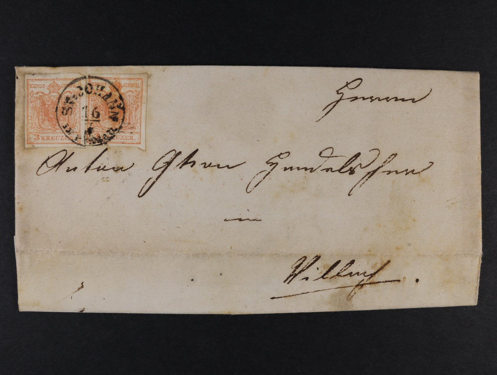 1499 skl. dopis z r. 1858 frank. zn. Fe. č. 3, typ I (2x), pod. raz. SCHOHANN + přích raz. 500