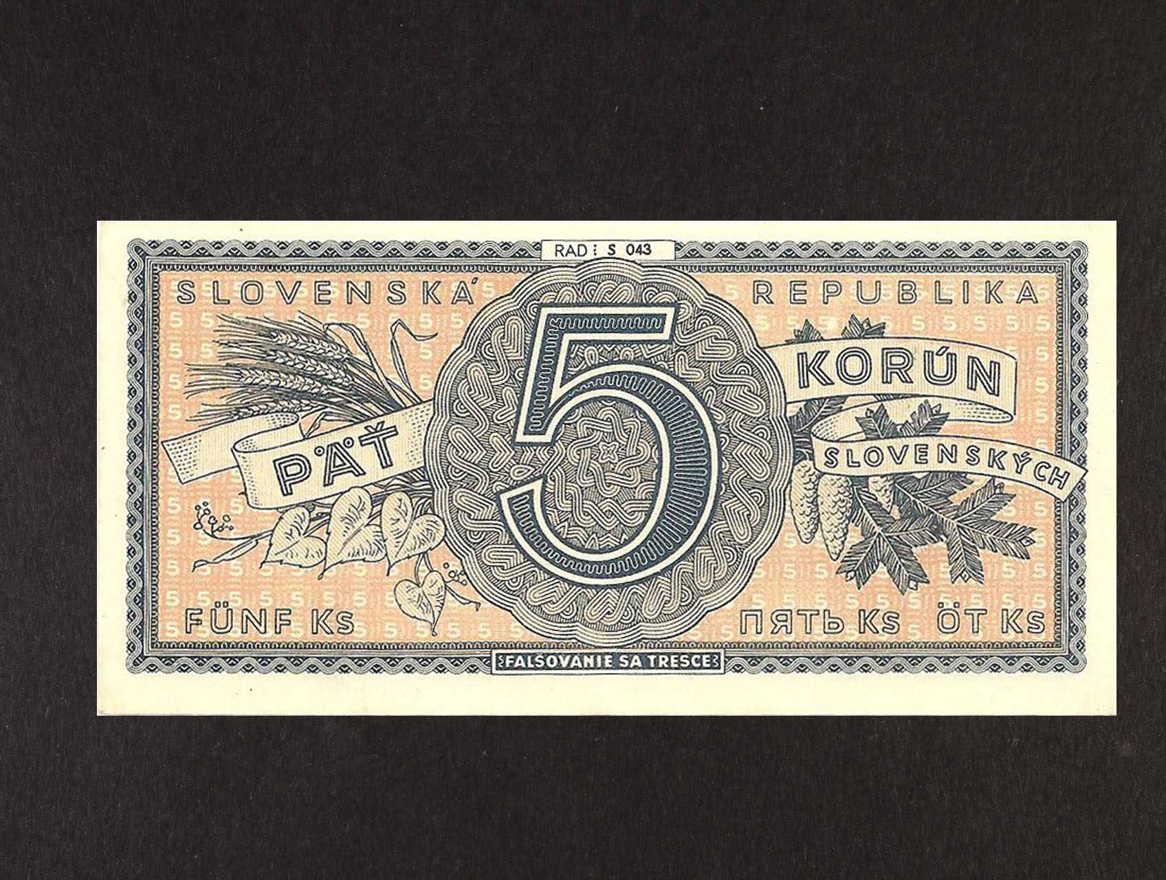 2015 5 Ks 1945 série S 043, Ba. 55b, Pi. 8a, v tomto stavu unikátní, velmi vzácná 120000