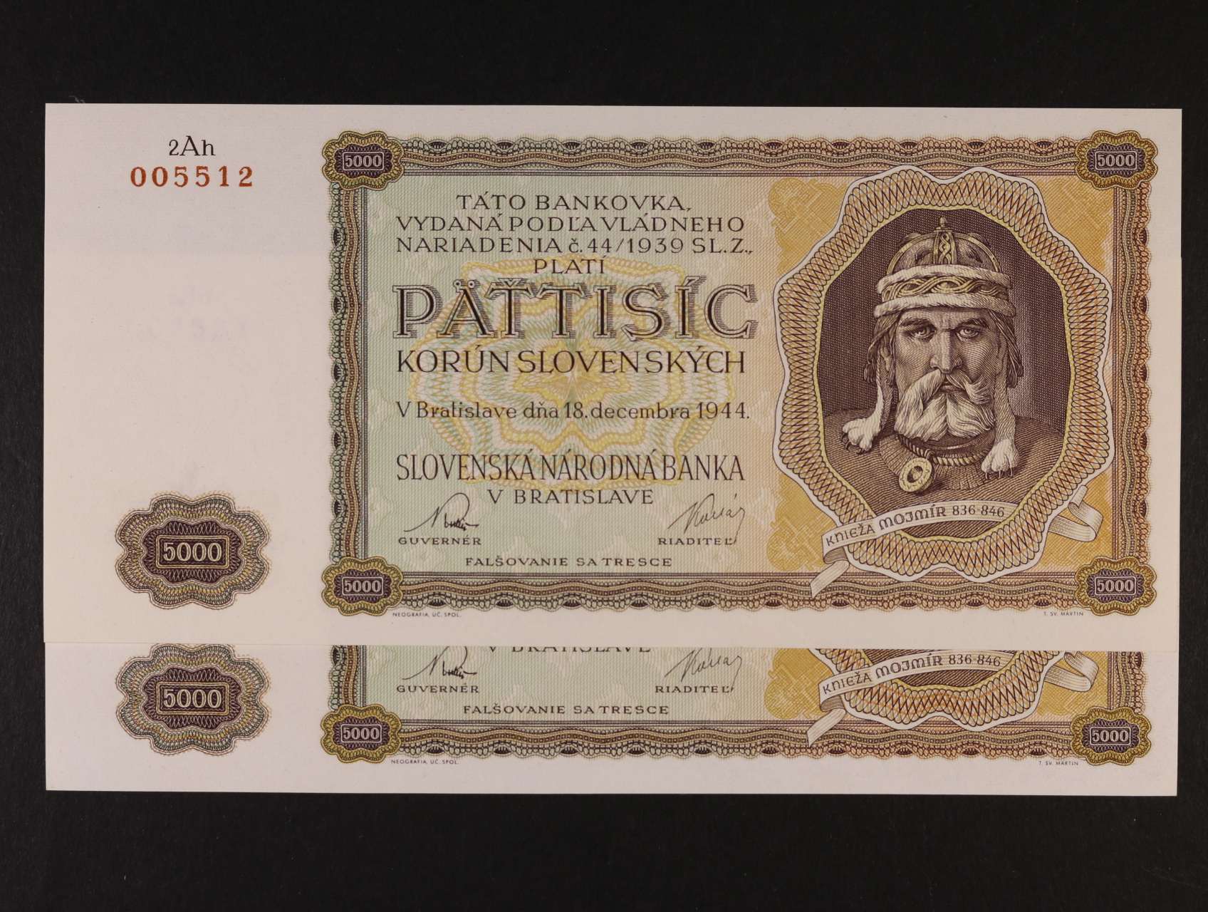 2017 5000 Ks 18.12.1944 kompletní sada sérií 1Ha, 2Ah, 3Lk, 4Kl, 5In, 6 Ni nevydané, Ba. N5, Pi. 14a 50000
