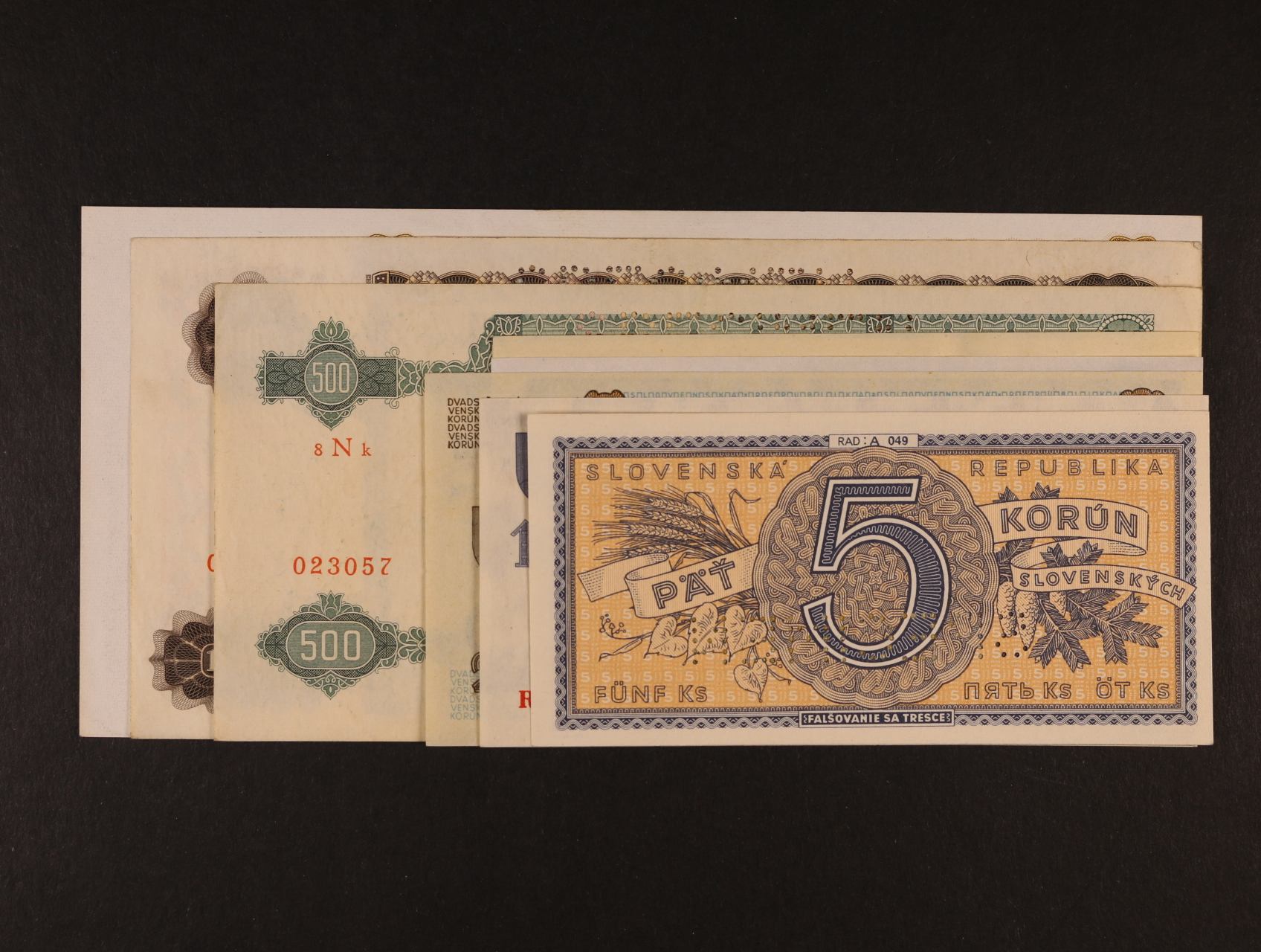 2020 9 ks bankovek 5 - 5000 Ks 1940 - 45 s perf. SPECIMEN 900