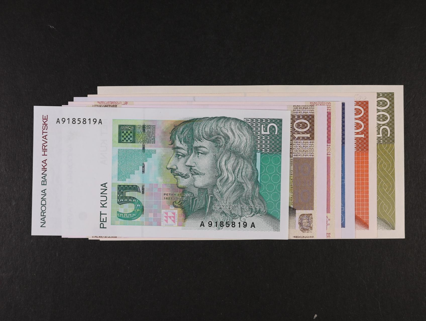 5, 10, 20, 50, 100, 500 Kuna 1993 - 2001, Pi. 28, 31, 32, 34, 38, 39