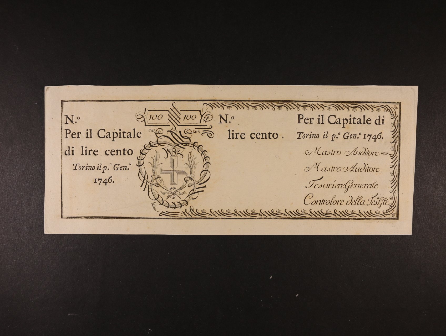 Regie Finanze Torino, 100 Lire 1.1.1746, Pi. S101r