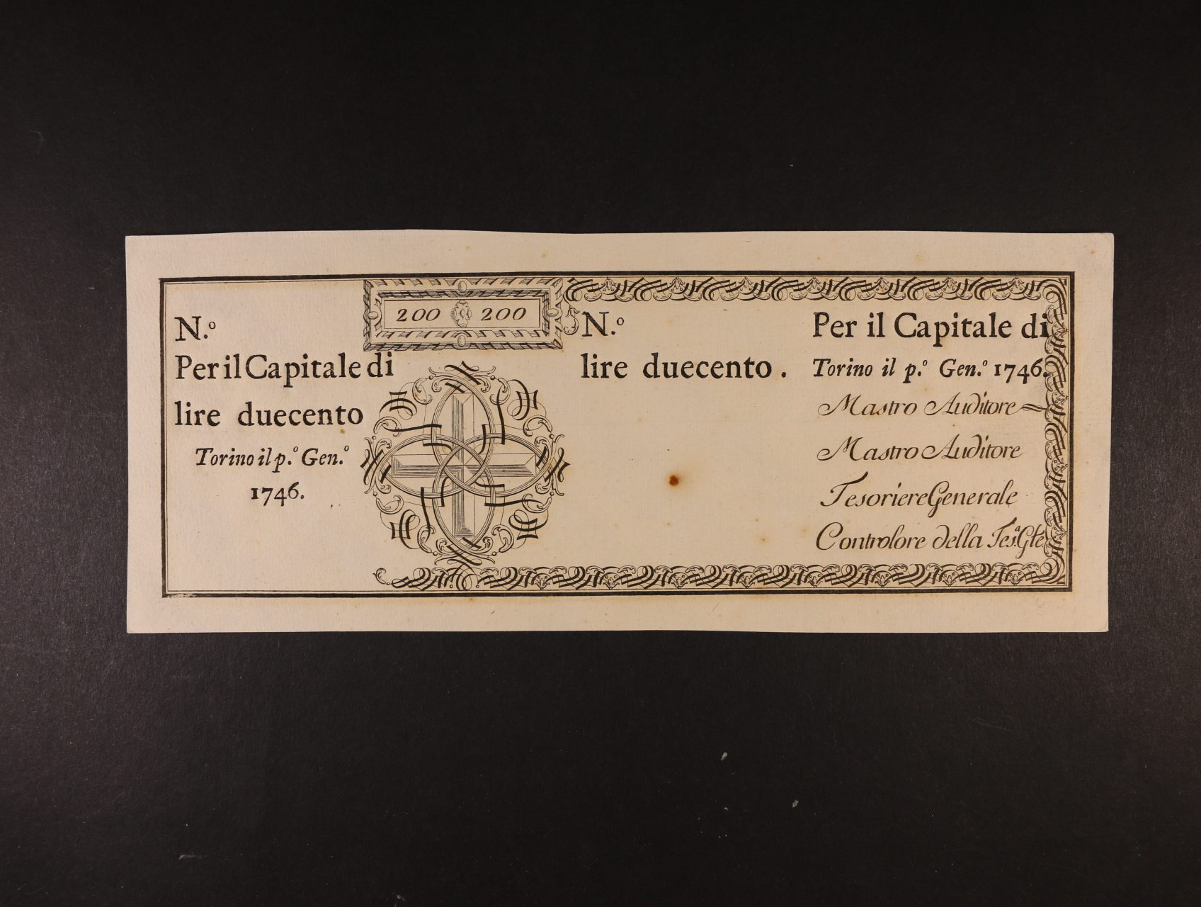 Regie Finanze Torino, 200 Lire 1.1.1746, Pi. S102r
