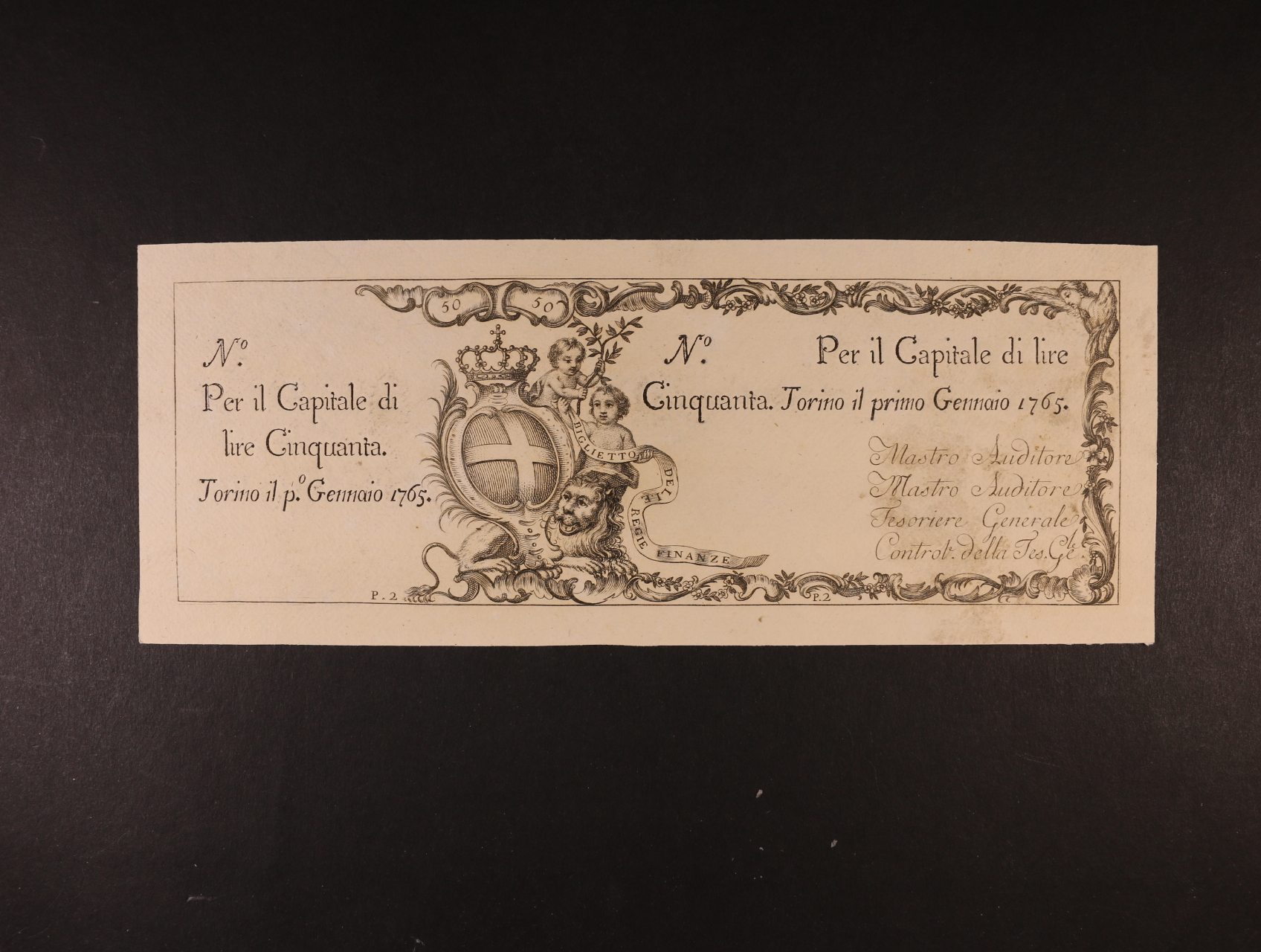 Regie Finanze Torino, 50 Lire 1.1.1765, Pi. S112r