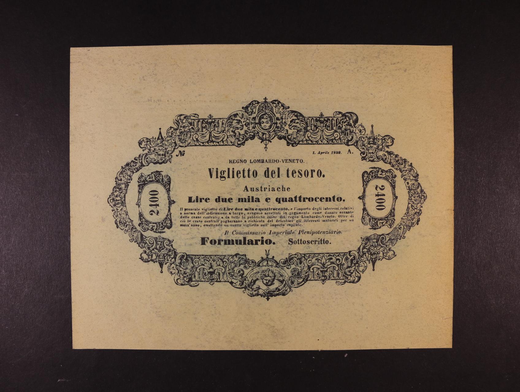 Regino Lombardo - Veneto, 2400 Lire 1.4.1849 oboustranný formulář, Ri. 527F, Pi. S205b