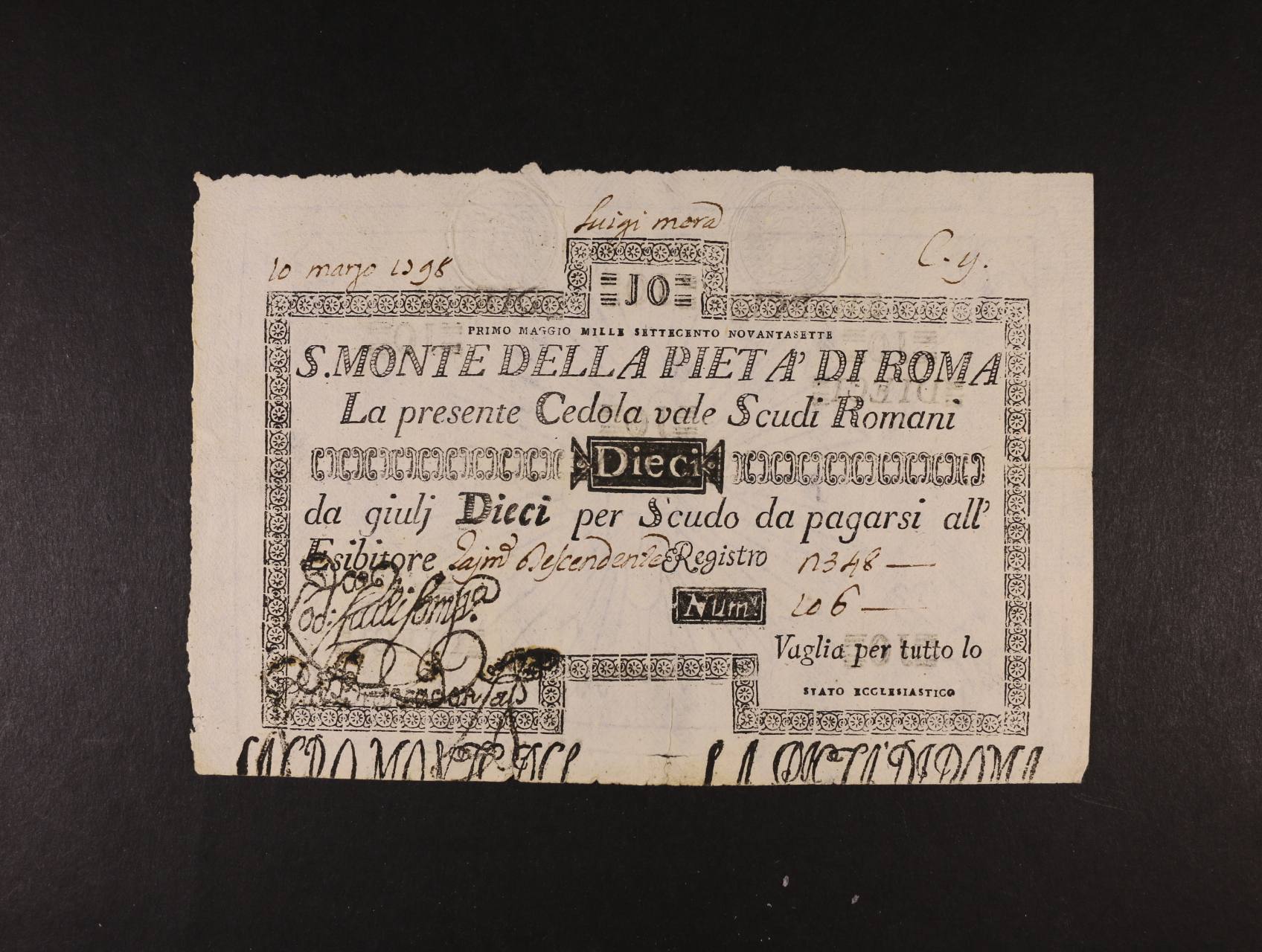 Papežský stát, 10 Scudi 1797, Pi. S308