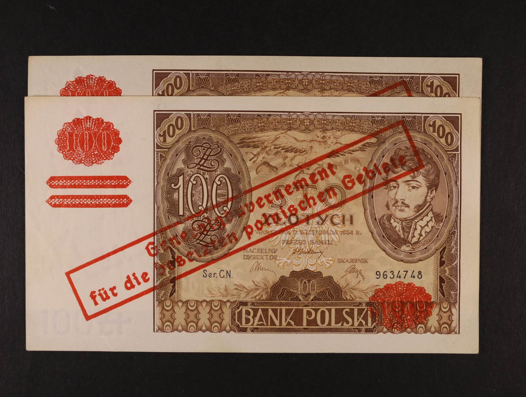 2407 Generalgouvernement, 2x 100 Zlotych 1939 s padělaným přetiskem, Pi. 90 Falsch (2ks) 400
