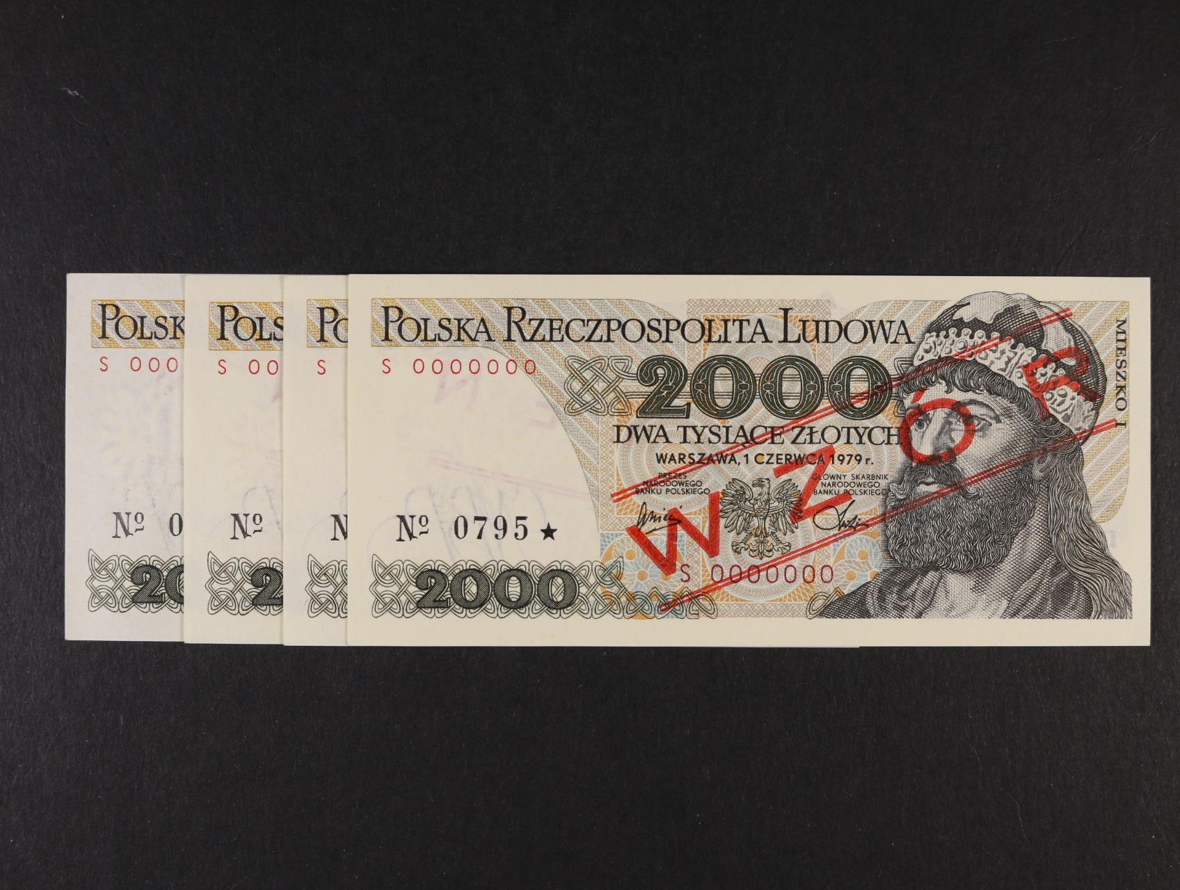2408 2000 Zlotych 1.6.1979 anulát s přetiskem WZÓR, 5 ks číslované po sobě, Pi. 147s2 5x 900