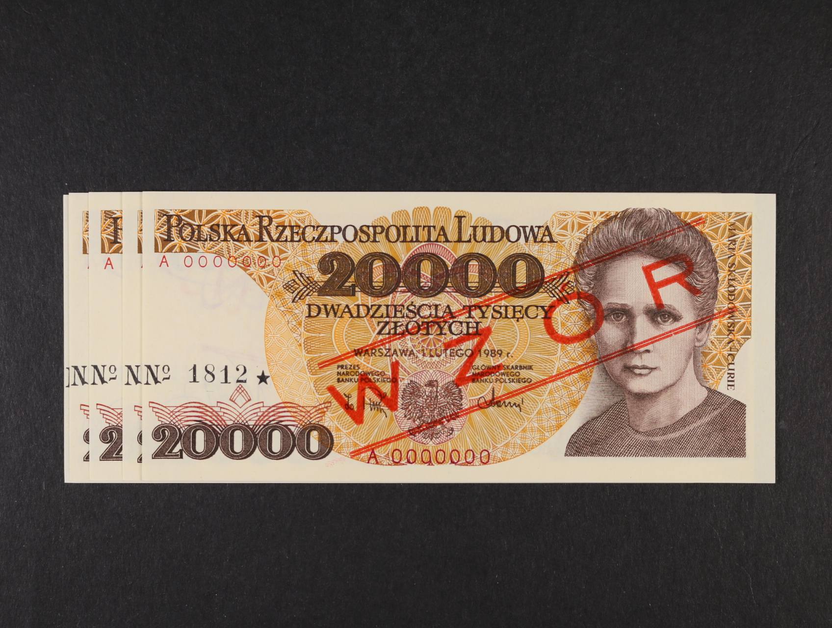 2409 20.000 Zlotych 1.2.1989 anulát s přetiskem WZÓR, 5 ks číslované po sobě, Pi. 152s 5x 900