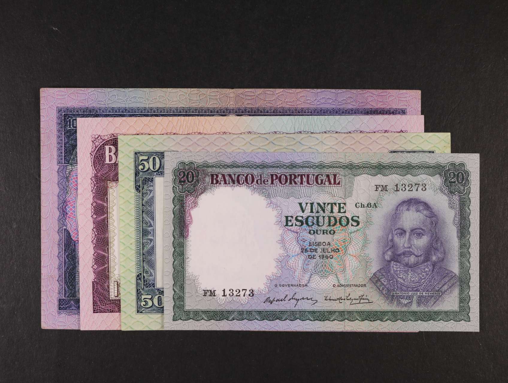 2416 20 Escudos 26.7.1960, 50 Escudos 24.6.1960, 100 Escudos 19.12.1961, 1000 Escudos 30.5.1961, Pi. 163, 164, 165, 166 2500
